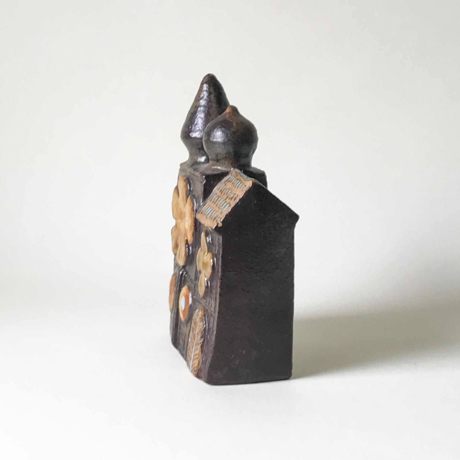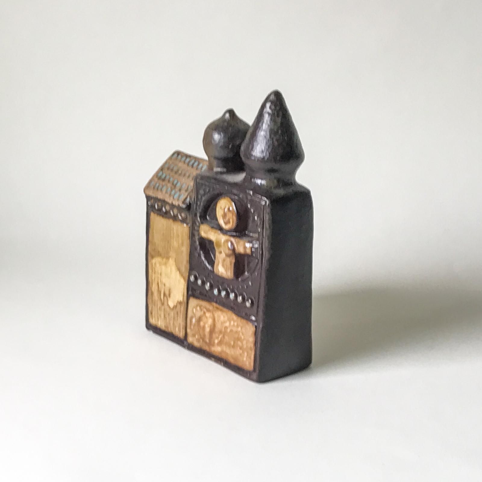 スウェーデン・グスタフスベリ社で1960年代に制作されていたBAGDAD | バグダッド シリーズの建物です。デザイナーは BERTIL VALLIEN | バーティル・ヴァリーン。バグダッドの建物をモチーフにしたシリーズのひとつです。表は花をモチーフに、裏は人が両手を広げて微笑んでいます。きのこのようなふたつの屋根が中東らしく特徴的です。