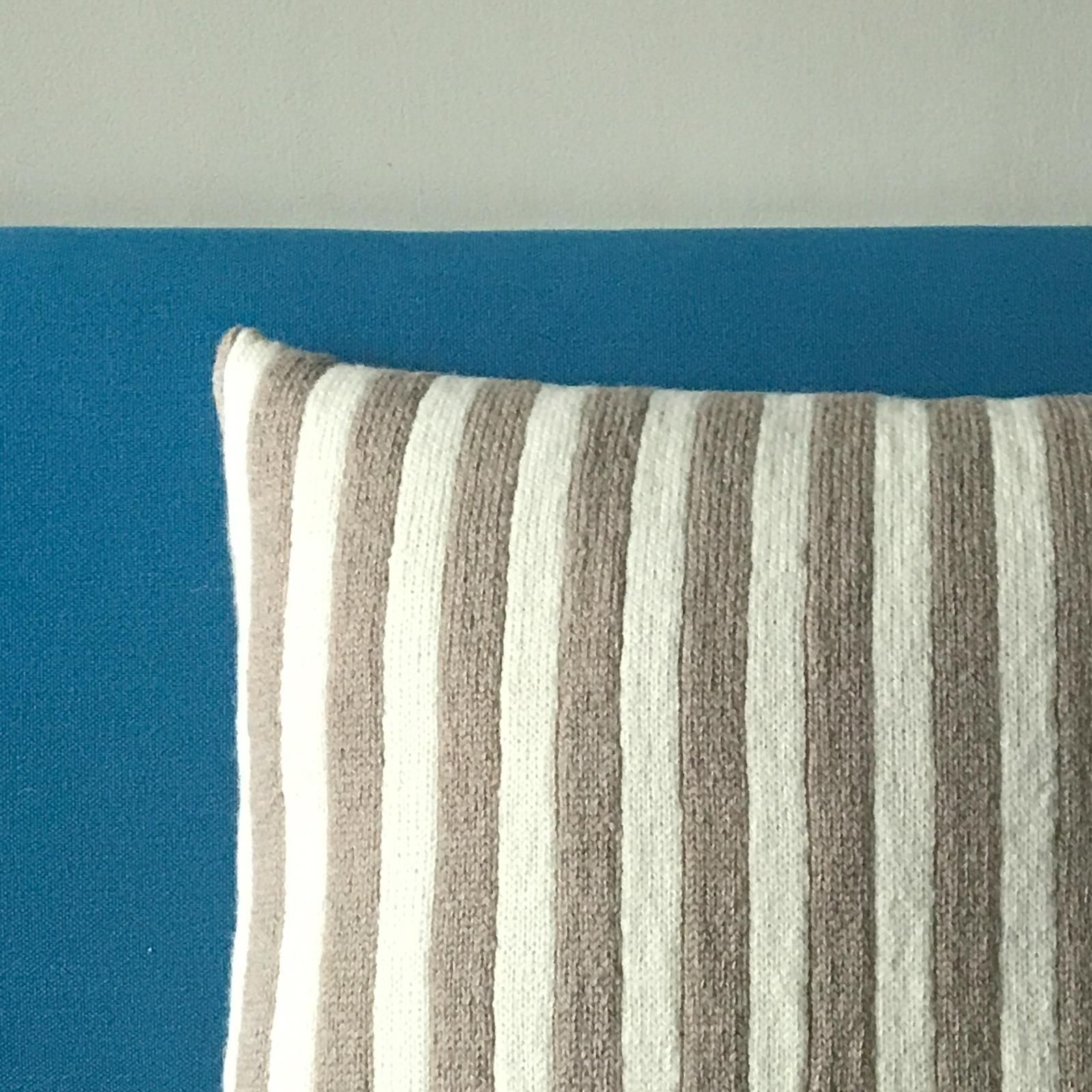 ベージュXホワイトのストライプ模様は、シンプルでインテリアに馴染みやすく、飽きのこない色柄です。最後の画像のように、グレーとベージュを色違いで並べるのもおすすめです。