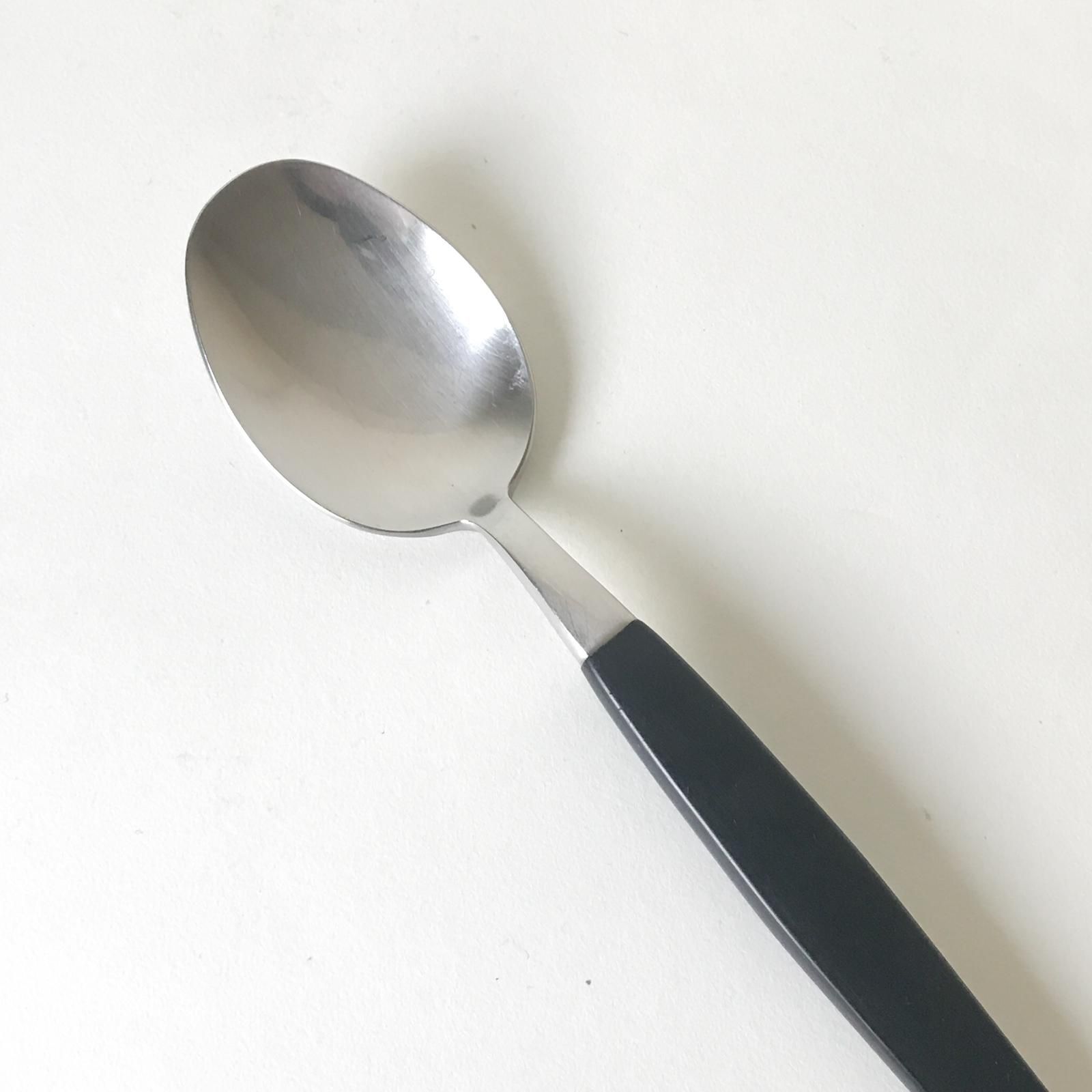 スウェーデンの NILS JOHAN | ニルス ヨハン社 で1970年代に作られていたスプーンです。ブラックのプラスティックのハンドルはシックで落ち着いた雰囲気。テーブルコーディネイトがキリッと引き締まります。