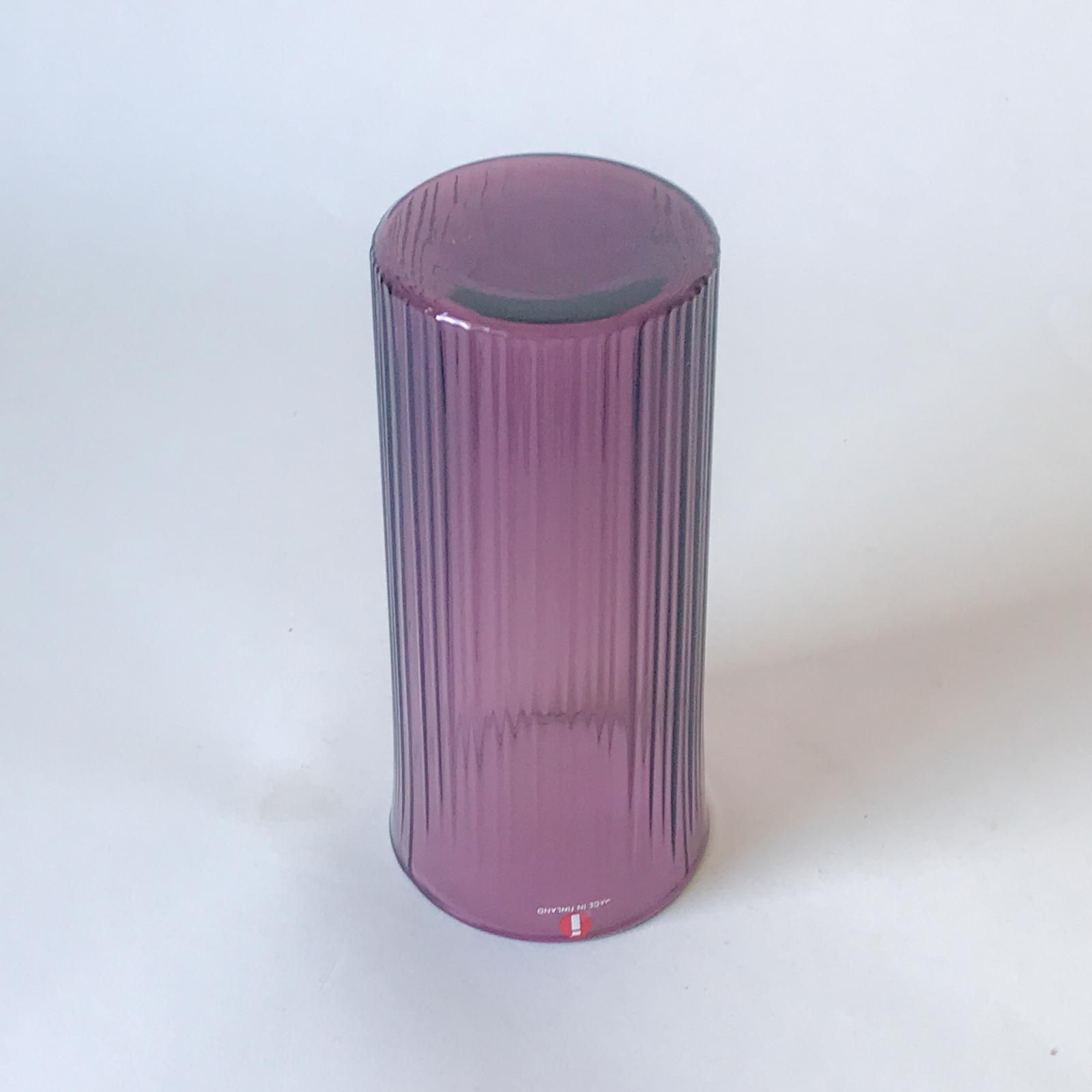 iittala | イッタラ社でデザイナーとして活躍した タピオ・ウィルカラがデザインした、ロングタンブラー 2065 です。イッタラ独自の美しいパープルのグラスは、細かな凹凸模様で、光の当たり具合によって色合いに変化が出て、とてもきれいな表情が見てとれます。細長いグラスは、花器として枝物などを飾ってもすてきです。