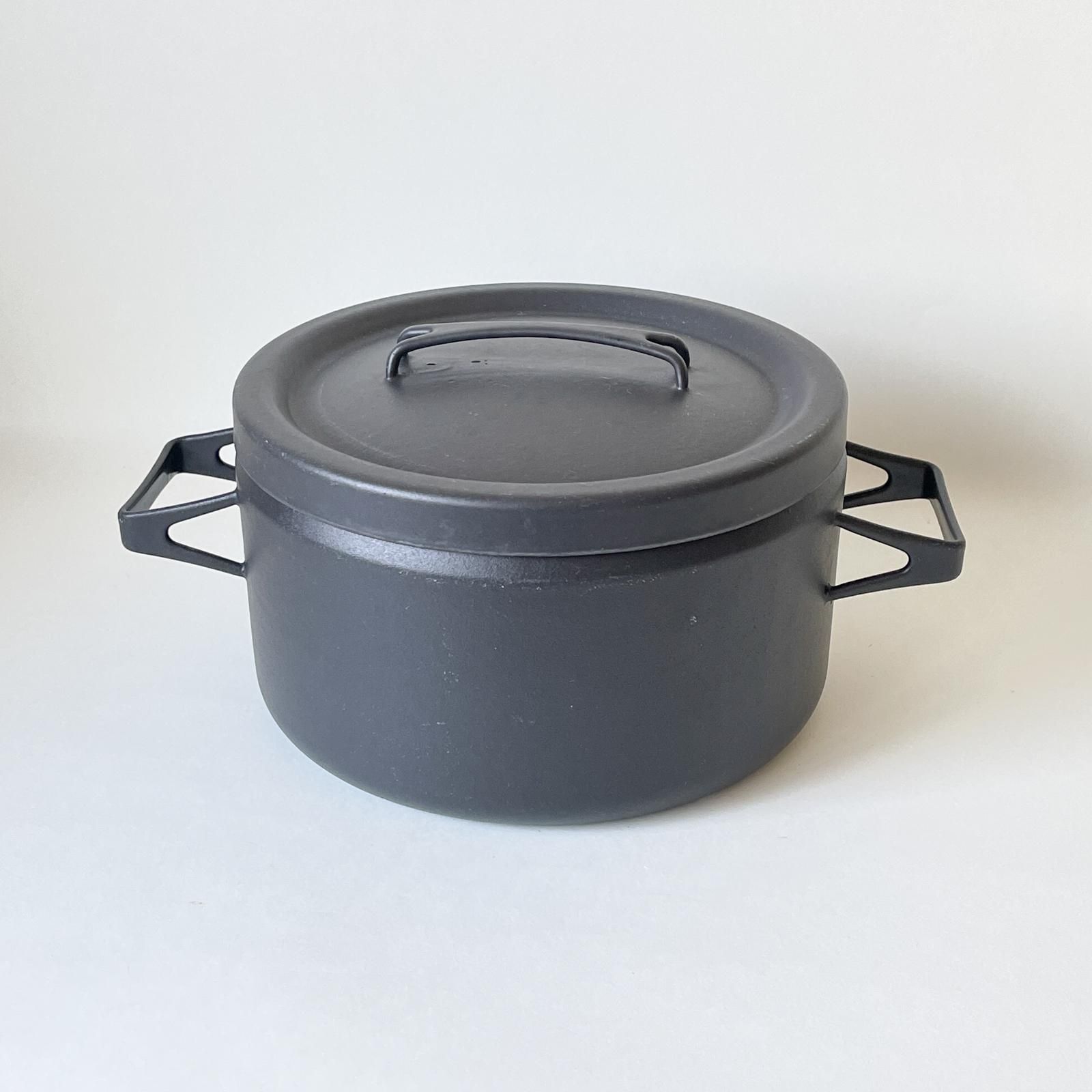 フィンランドで1960年-1970年代に生産されていた、フィネルのホーローの両手鍋です。容量は4リットルとたっぷりサイズ。マットなブラックは生産数が少なく、希少性があります。デザイナーはフィネルで数々のグッドデザインの調理器具をデザインしたセッポ・マッラト。このシリーズは、赤、黄色、ネイビー、オリーブグリーンなど、色バリエーションが豊富ですが、このマットブラックは落ち着いた魅力と存在感があります。
