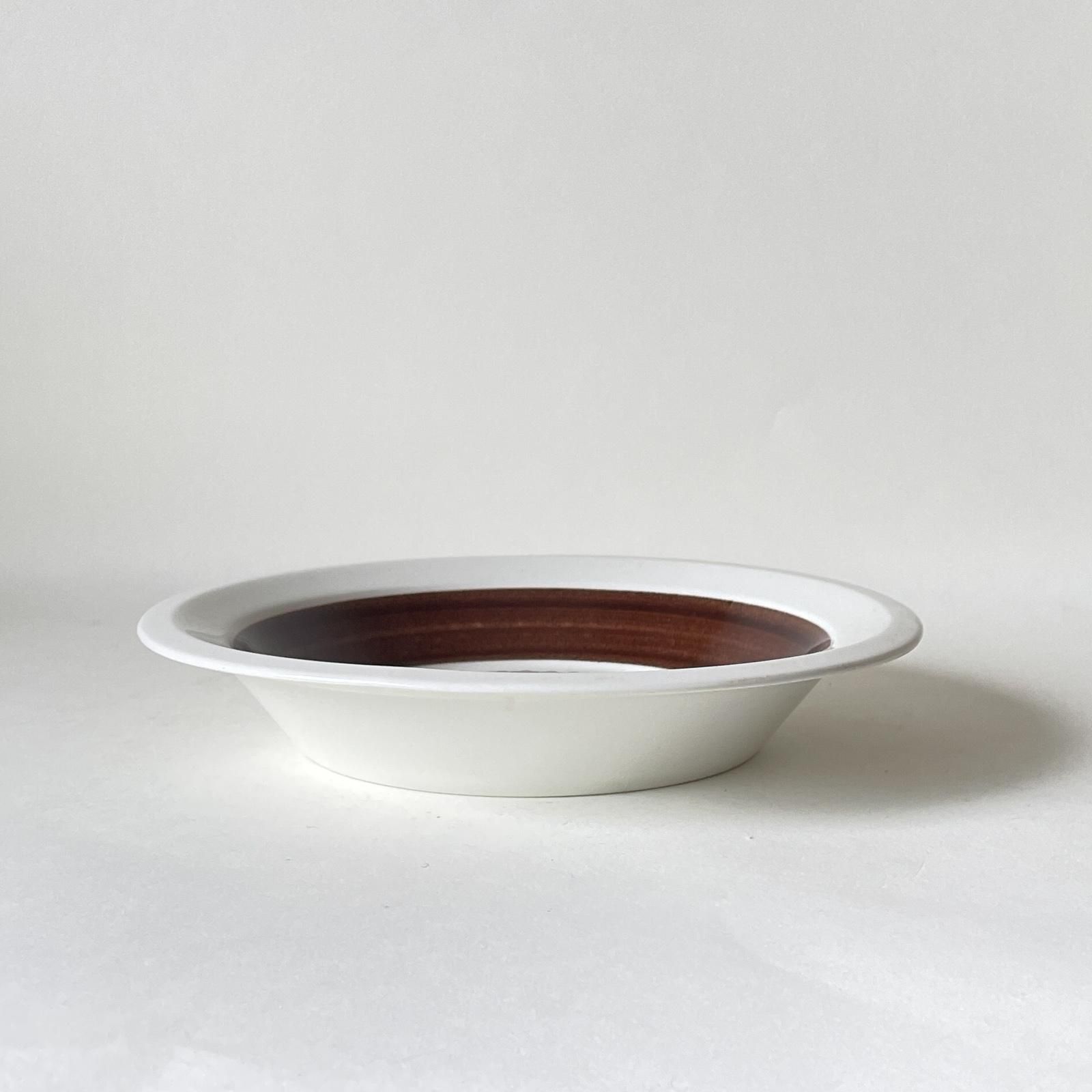 ARABIA社製の FAENZA | ファエンツァ シリーズのスープボウルです。濃いブラウンの幅広いふちどりと小花柄がぎゅっと重なり合った模様は、このシリーズの中でも人気の柄です。この図柄をデザインしたのは、INKERI SEPPARA | インケリ・セッパラ で、製造されていたのは1973年-1979年の6年間という短い期間でした。