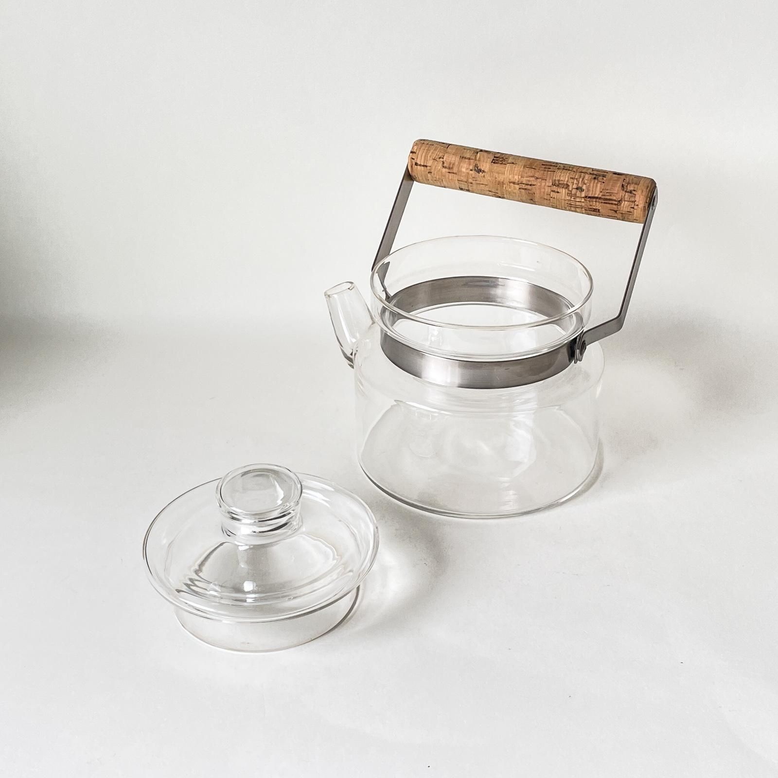スウェーデンのプロダクトデザイナー、シグネ・ペーション・メリンがデザインし、1971年にBODA NOVA社から発売された、耐熱ガラスシリーズのティーポットとウォーマーのセットです。LとSの2サイズ作られていたうち、こちらはSサイズになります。円柱形のすっきりとしたデザインのポットは、マウスブロウ(口吹き)によって作られたもの。そのため注ぎ口とフタのそれぞれに個体差があり、ハンドメイドならではの魅力が感じられる逸品です。ウォーマーにカップインキャンドルを灯して、テーブルで温度をキープしながらティータイムを楽しめます。(直火にはお使いいただけません)