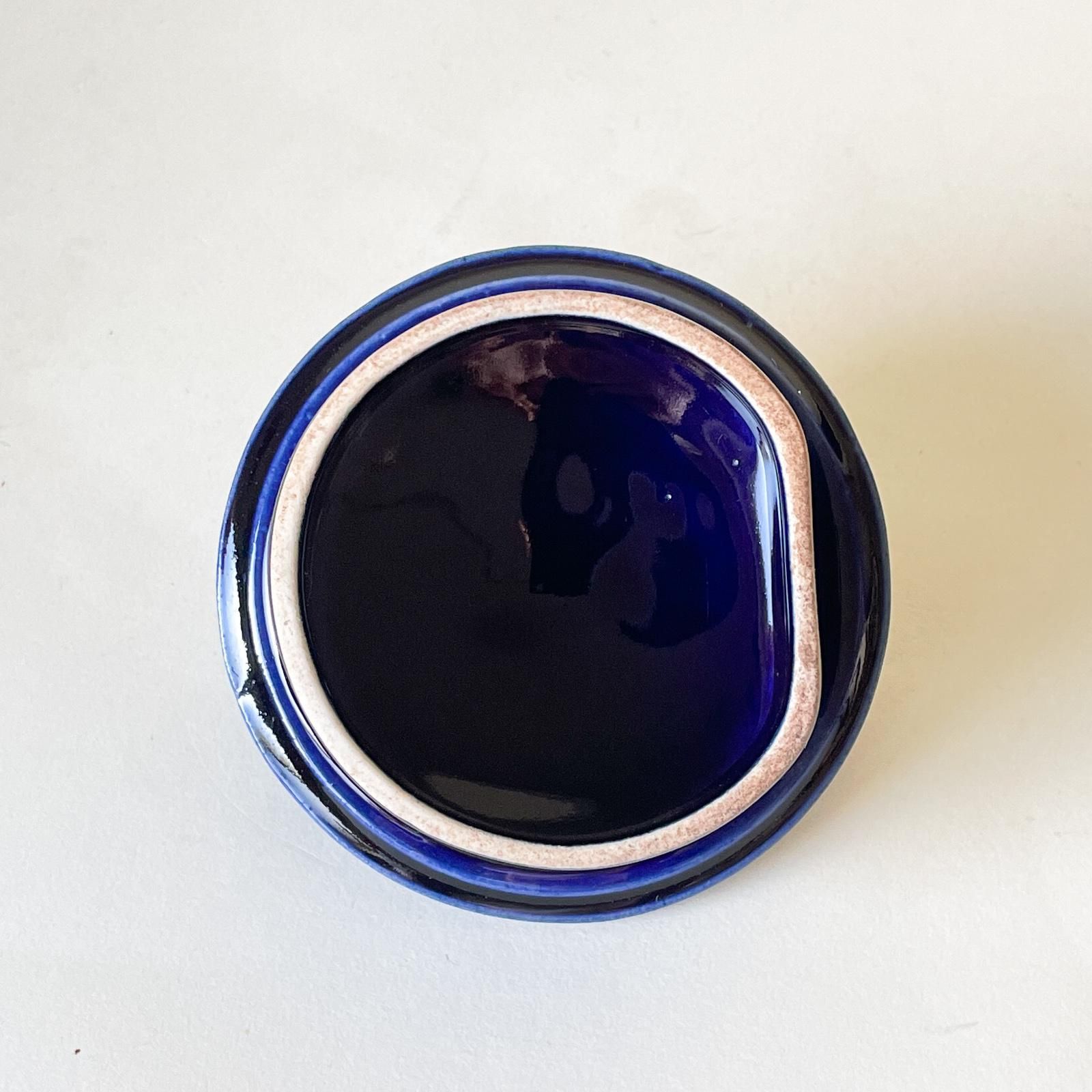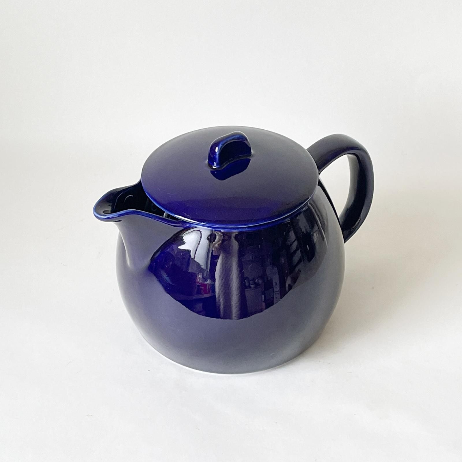 ARABIAで1952年から1970年まで製造されていたKF-3のティーポットです。コロンとした丸みのある愛らしいフォルム、注ぎ口の緩やかなカーブとフタのつまみのデザイン、そして光沢のある深いブルーの色合い。細部にまで魅力が詰まった逸品です。茶こし穴がついていて容量は1500ccです。