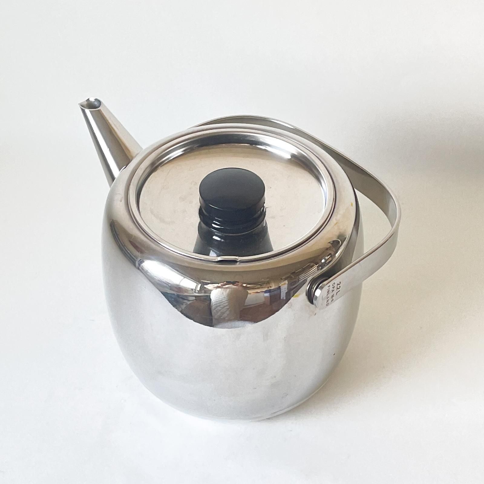 フィンランド・OPA社で作られたステンレスのケトルです。デザイナーはフィンランドの著名なプロダクトデザイナーである TIMO SARPANEVA | ティモ・サルパネヴァ で、1970年にデザインされました。