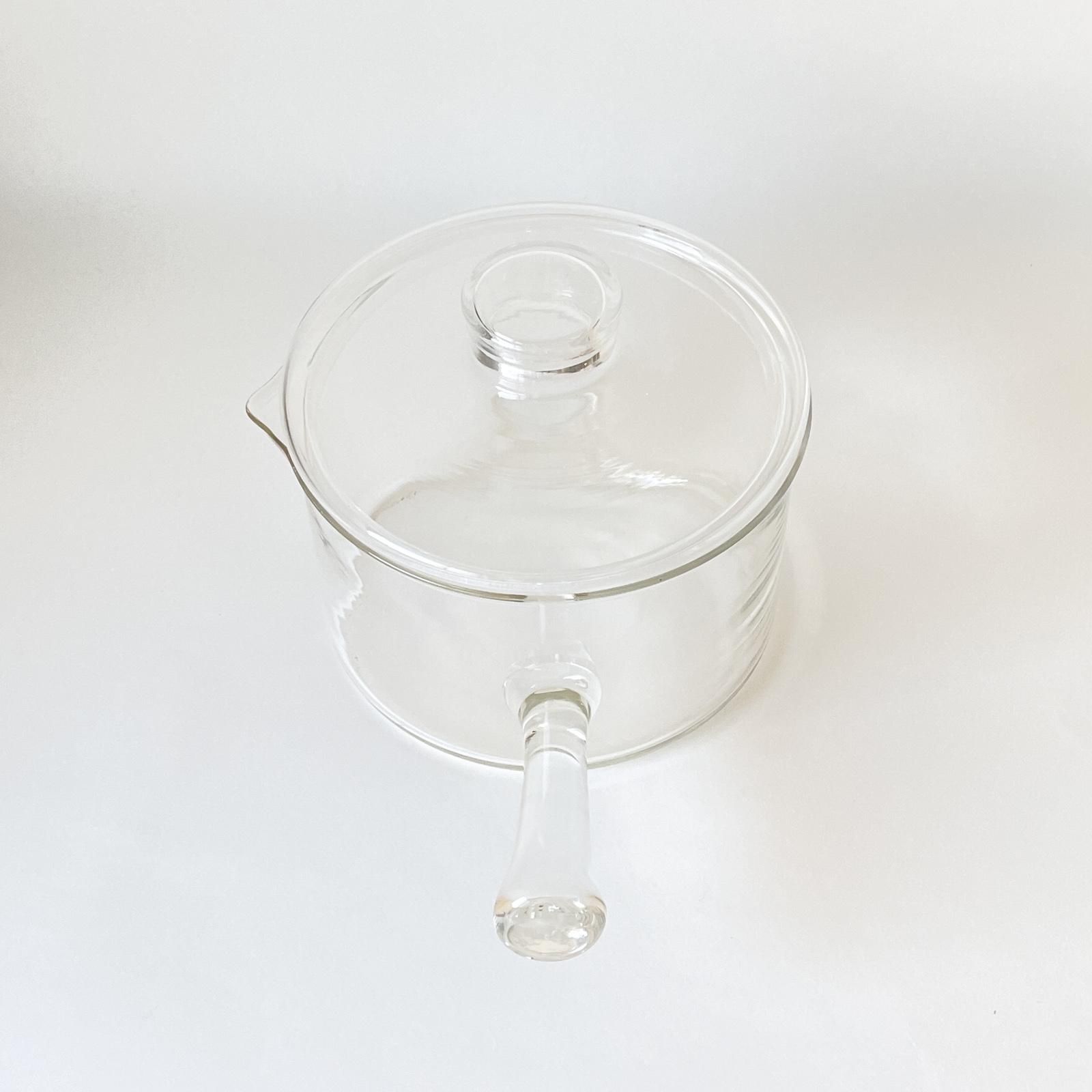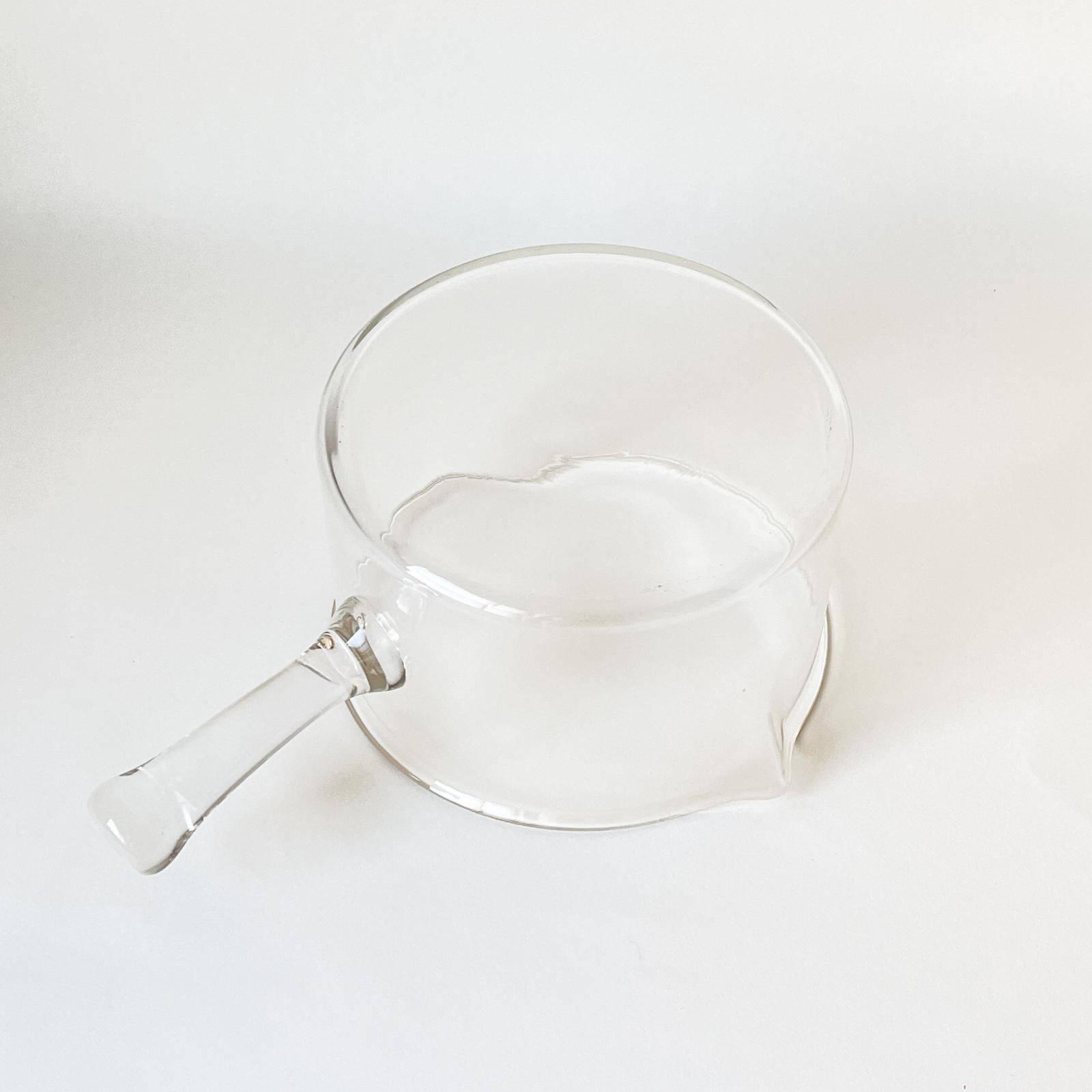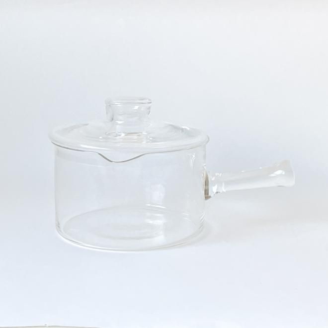 スウェーデンのプロダクトデザイナー、シグネ・ペーション・メリンがデザインし、1971年にBODA NOVA社から発売された耐熱ガラスシリーズのハンドルポットです。円柱形のすっきりとしたデザインのポットは、マウスブロウ(口吹き)によって作られたため、注ぎ口やフタ、ハンドルの形にはそれぞれ個体差がありハンドメイドの魅力が感じられます。紅茶やチャイなどをたっぷりと淹れてフィーカをたのしんだり、フレッシュハーブをたっぷりいれてハーブティーをたのしむのもガラスポットの楽しみです。