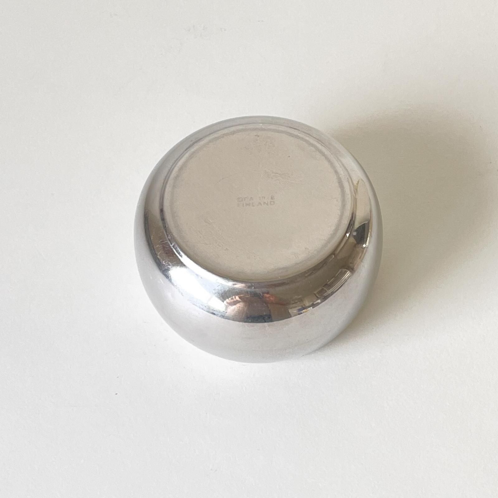 フィンランド・OPA社で1970年代に作られていたステンレスのシュガーボウルです。デザイナーはフィンランドの著名なプロダクトデザイナーである TIMO SARPANEVA | ティモ・サルパネヴァです。丸みのある円柱形はころんとしていて愛嬌のあるデザインです。