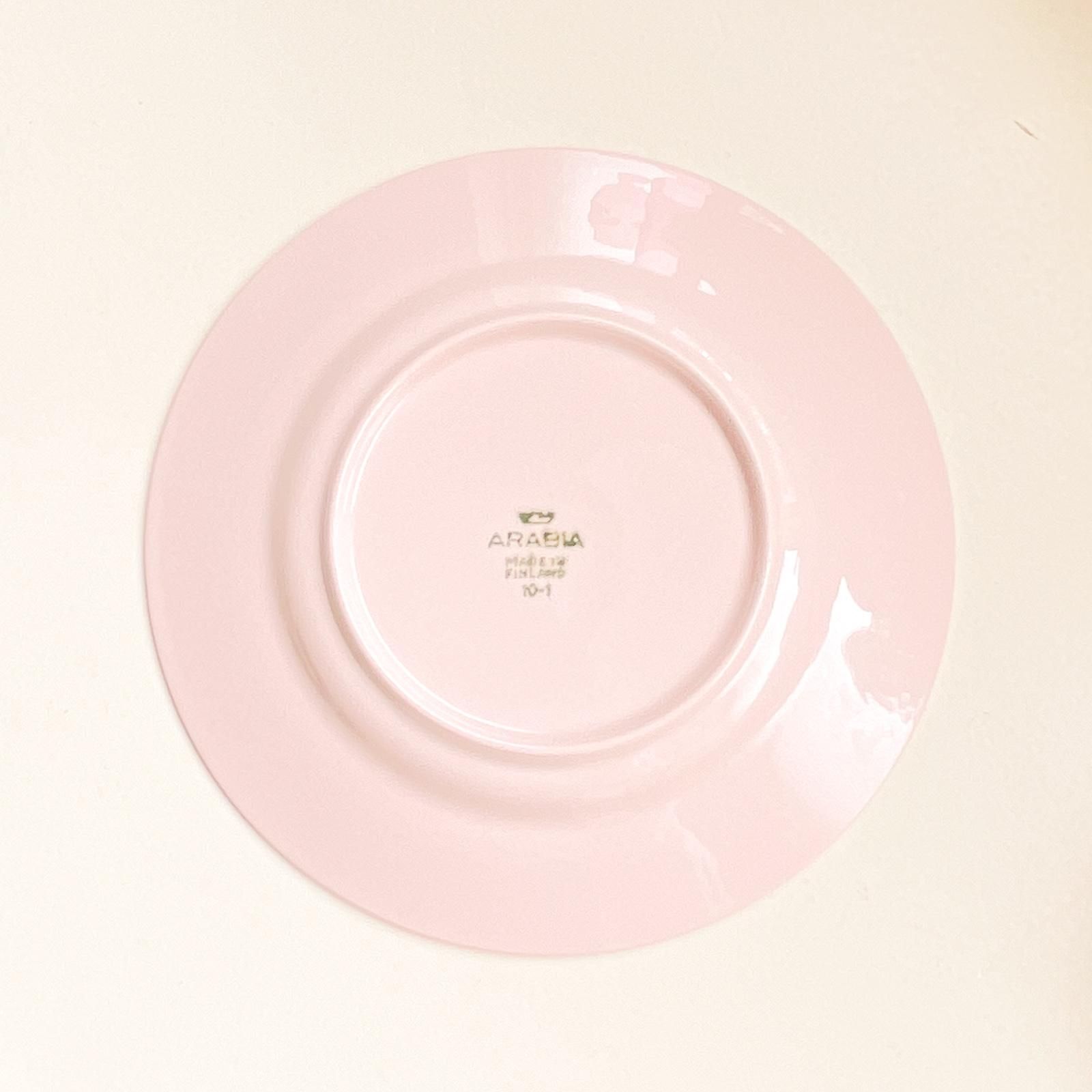 ARABIAで1952年 - 1961年の間に生産されていた SOINTU | ソイントゥシリーズのプレートです。カイ・フランによるデザインです。凸で表現したごく細いラインがぐるりとしたシンプルなデザインとやさしいピンクの色合いが魅力的です。