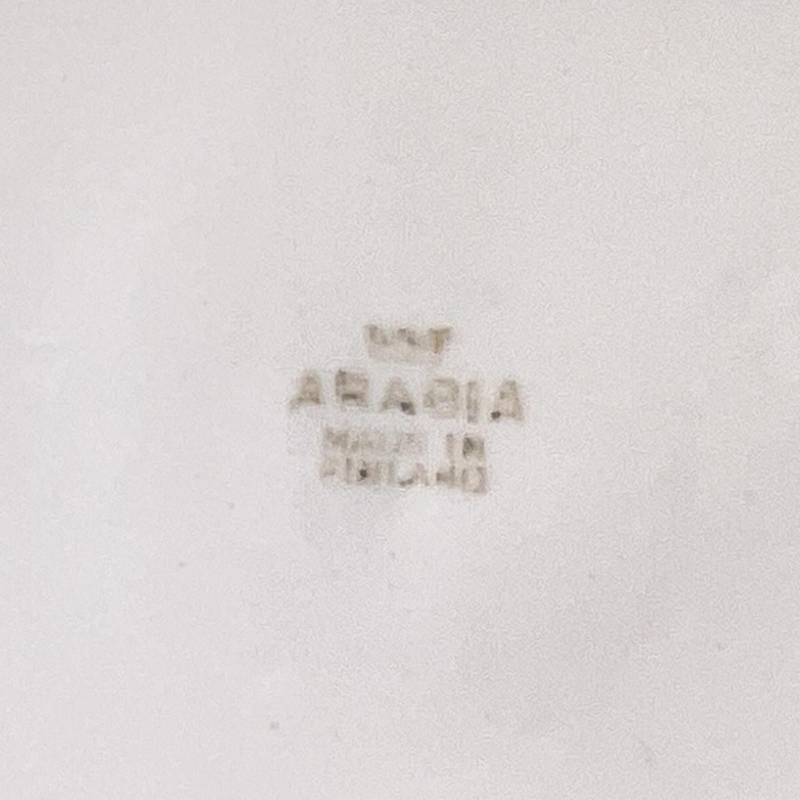 フィンランドで使用されていたユーズド品のため、線状のスレ跡が見られます。製造上にできたものとして、表にはごく小さな点状の凹みや凸起が見られ、裏側には針跡が見られます。他はヒビ、カケは無く良好なコンディションです。