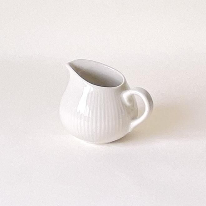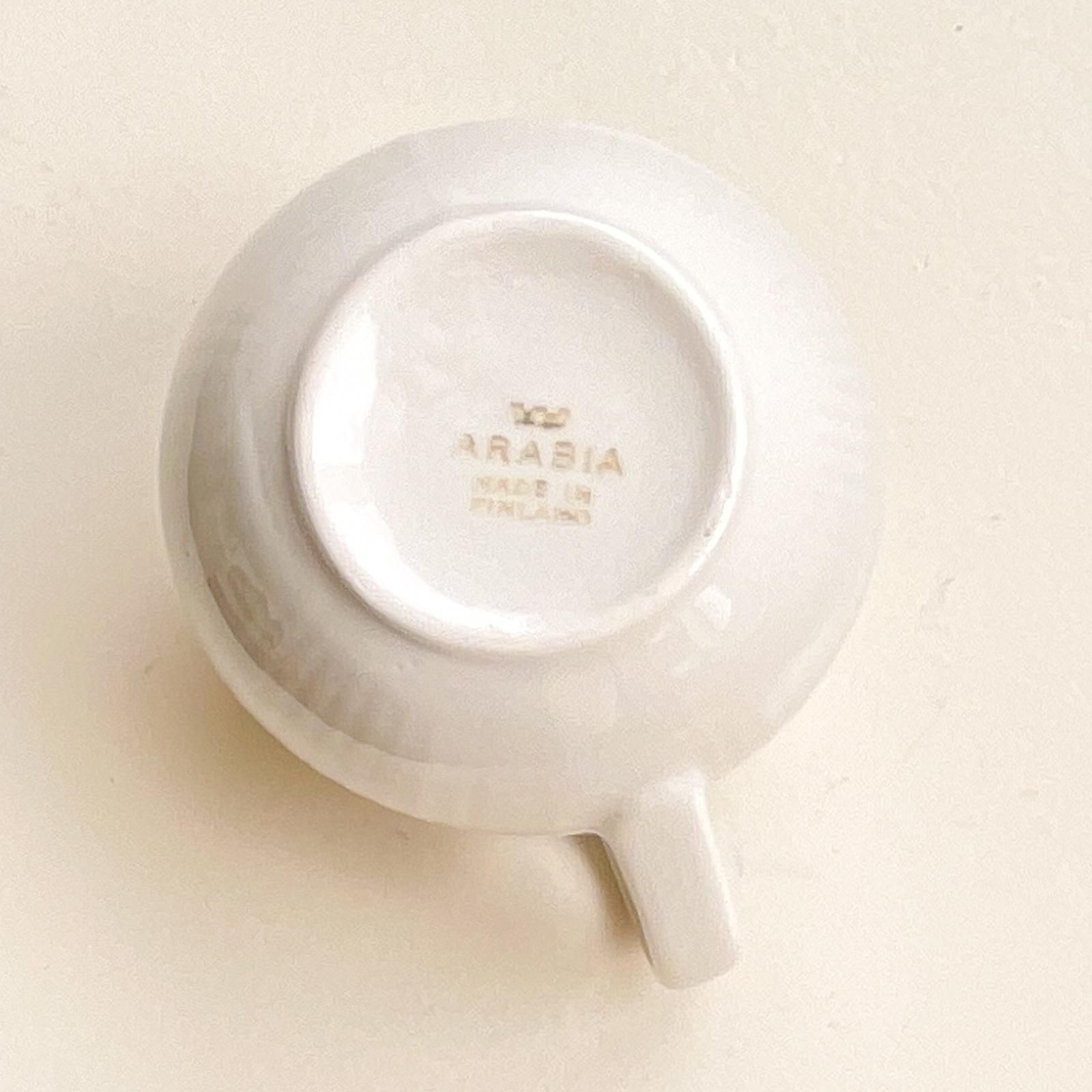 ARABIAで1952年 - 1961年の間に生産されていた SOINTU | ソイントゥシリーズのクリーマーです。カイ・フランによるデザインです。凹凸で表現されたごく細いラインがぐるりとしたシンプルなデザインと、やさしいライトグレーの色合いが魅力的です。
