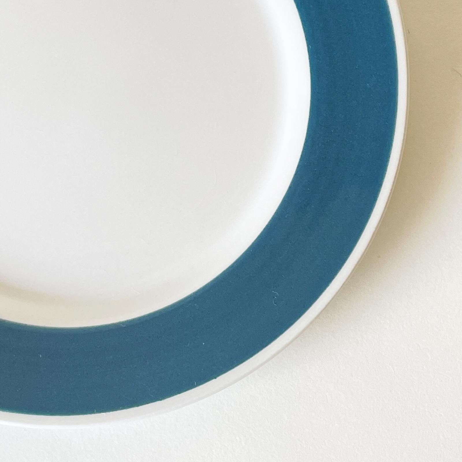 ARABIAで1964年から1974年の間に生産されていたMYRTTI | ミルテッィシリーズのプレートです。フォルムをデザインしたのは、ARABIAでデザインディレクターを務めたカイ・フランクで、彼の元でデザイナーをしていたカーリナ・アホにが装飾を施しました。すっきりしたフォルムと北欧らしいきれいなブルーの色合いがとても魅力的な逸品です。