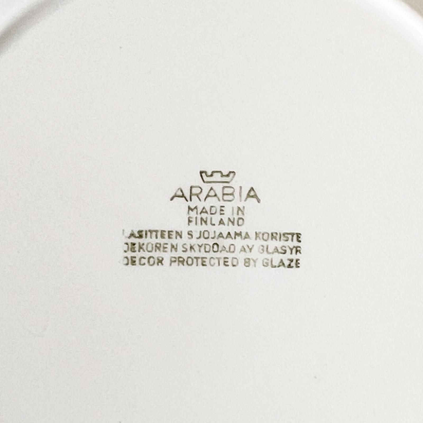 フィンランドで使用されていたユーズドですので、表に線状の擦れ跡が見られます。裏には製造上の針跡と、表には釉薬のかかり漏れ、点状の凸起が見られます(最後の画像をご確認ください)。全体的にはヒビ、カケは無く良好なコンディションです。