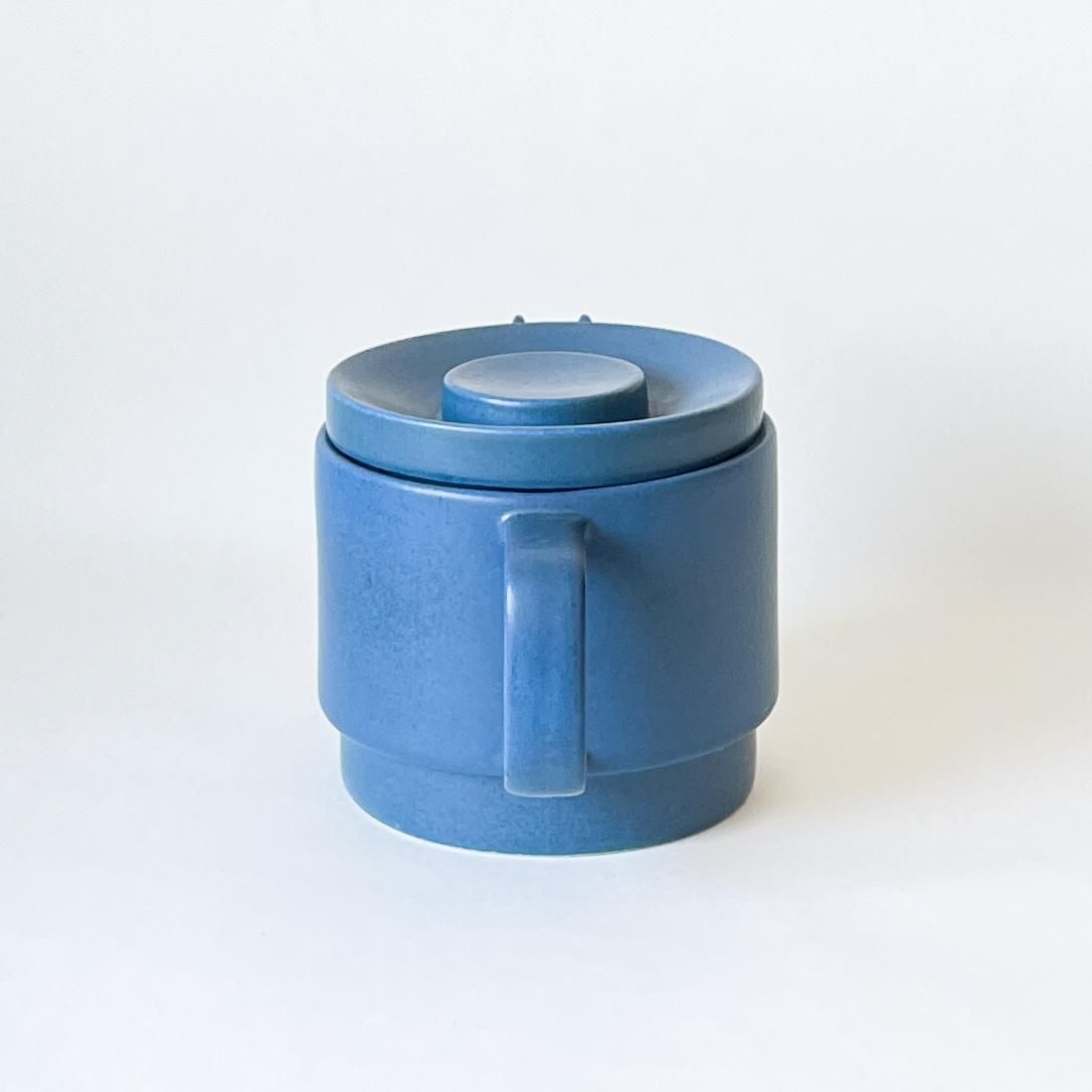 ノルウェイの陶器メーカー・EGERSUND社で1970年代に作られていたティーポットです。安定感のある円柱形に、厚みのあるフタやコの字型のハンドルが魅力的なデザイン。北欧らしいシックなブルーが美しいです。