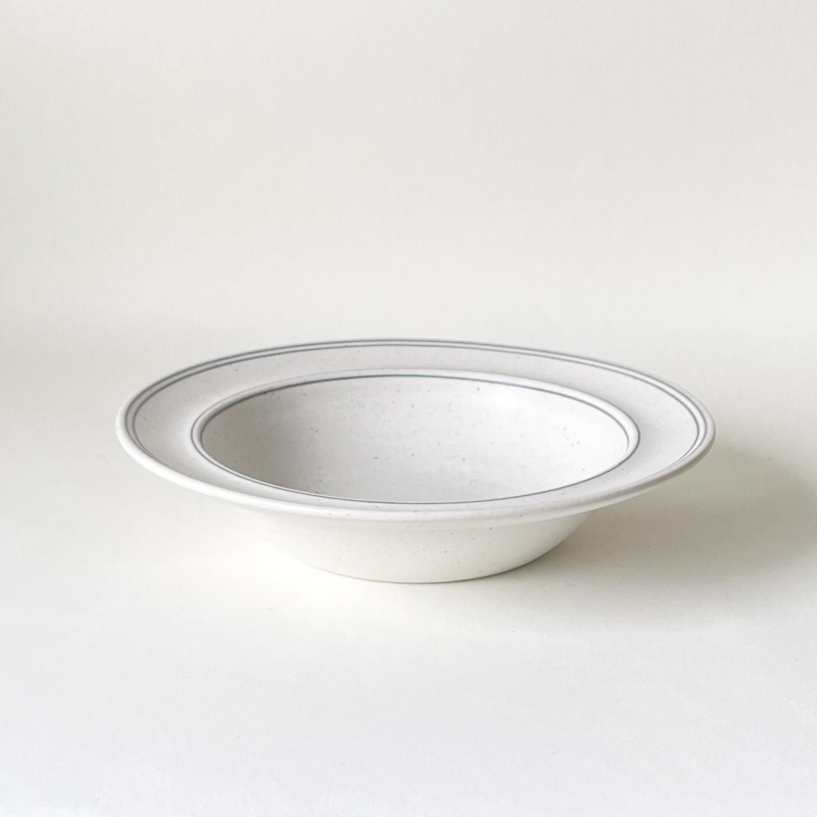スウェーデンの著名なデザイナー、STIG LINDBERG | スティッグ・リンドベリが手掛けたBIRKAシリーズのボウルです。BIRKAはアイボリー地に黒い黒点がランダムに散りばめられ、ブルーグレーのラインで縁取りしたシリーズです。陶器メーカー・グスタフスベリで、1973年から1995年まで製造されていました。