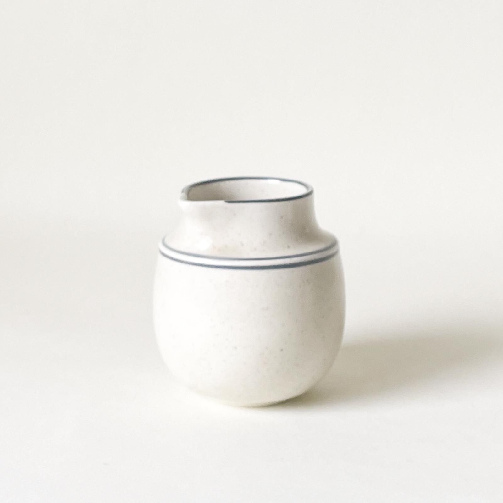 スウェーデンの著名なデザイナー、STIG LINDBERG | スティッグ・リンドベリが手掛けたBIRKAシリーズのミルク&シュガーボウルのセットです。BIRKAはアイボリー地に黒い黒点がランダムに散りばめられ、ブルーグレーのラインで縁取りしたシリーズです。陶器メーカー・グスタフスベリで、1973年から1995年まで製造されていました。