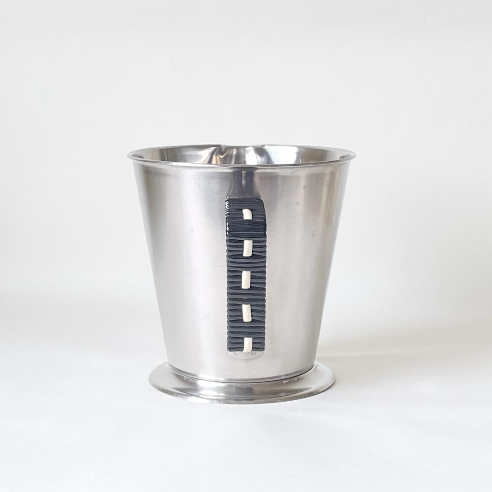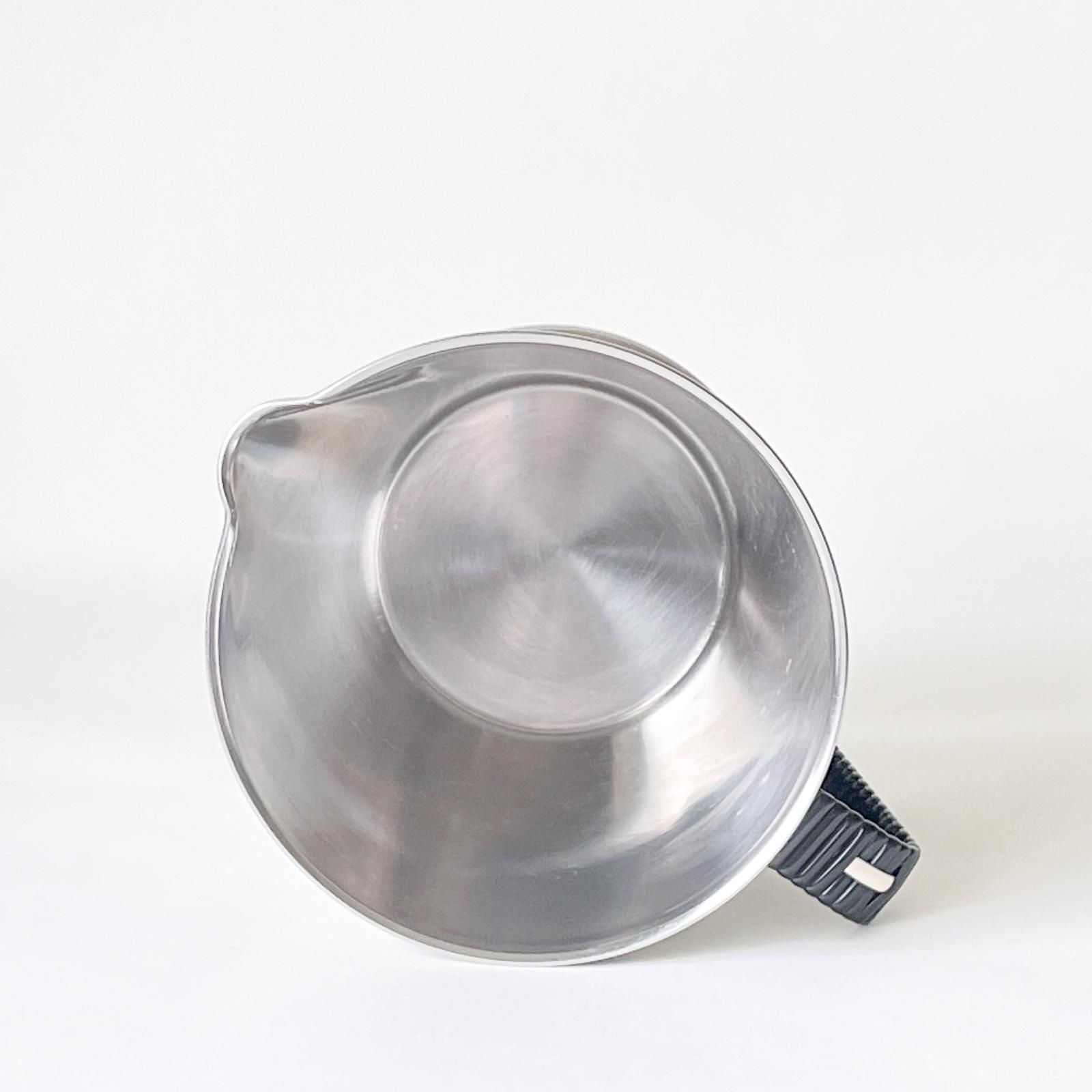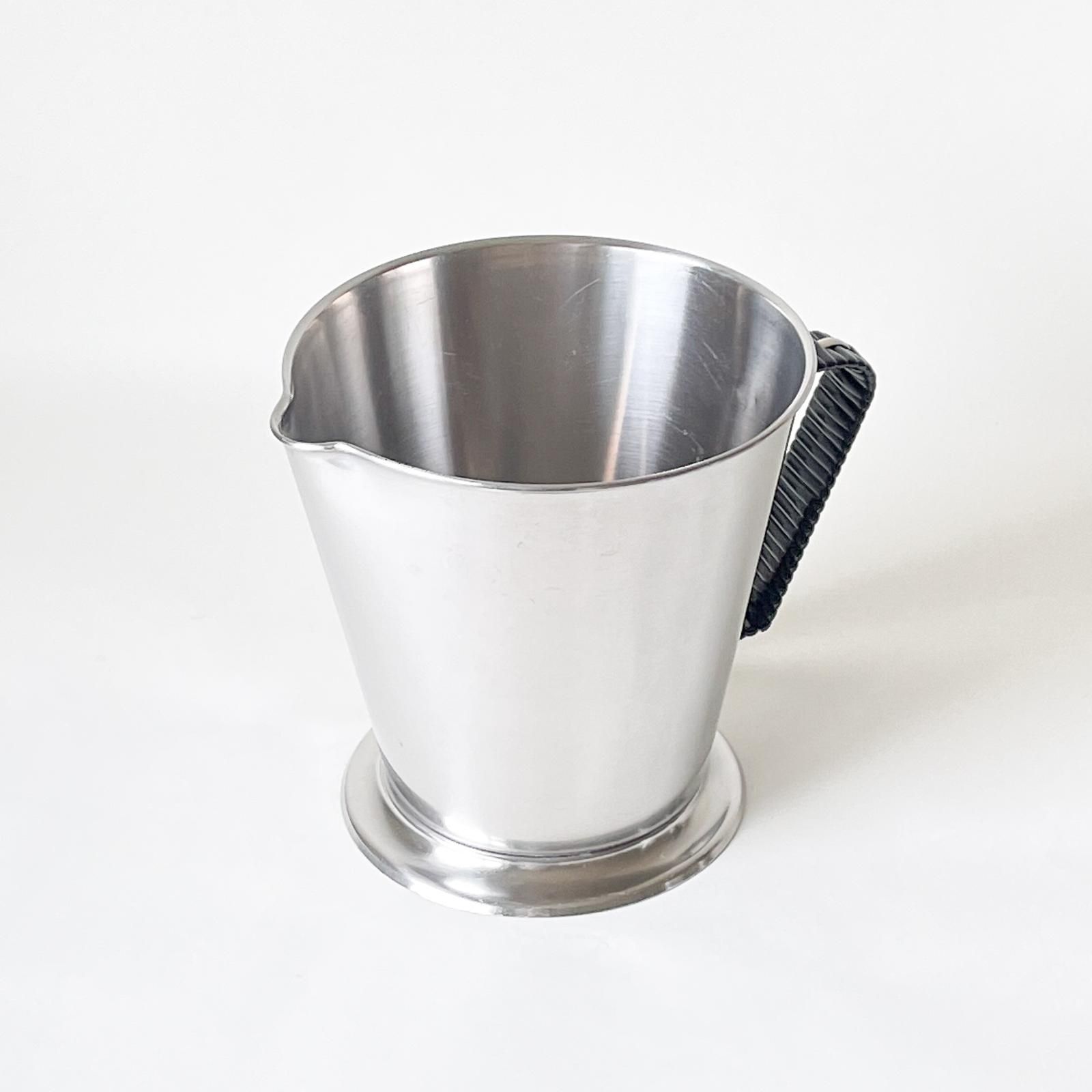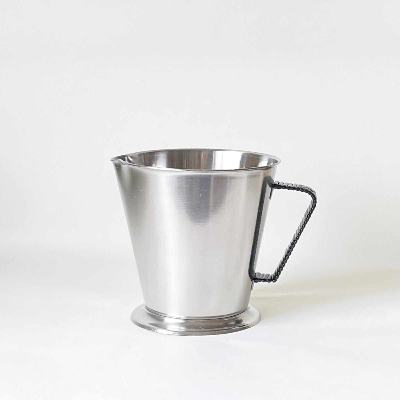 デンマーク製のステンレス製のピッチャーです。ブラックにホワイトをアクセントにしたビニール素材の紐が、ハンドルに編み込まれたシックなデザインです。
