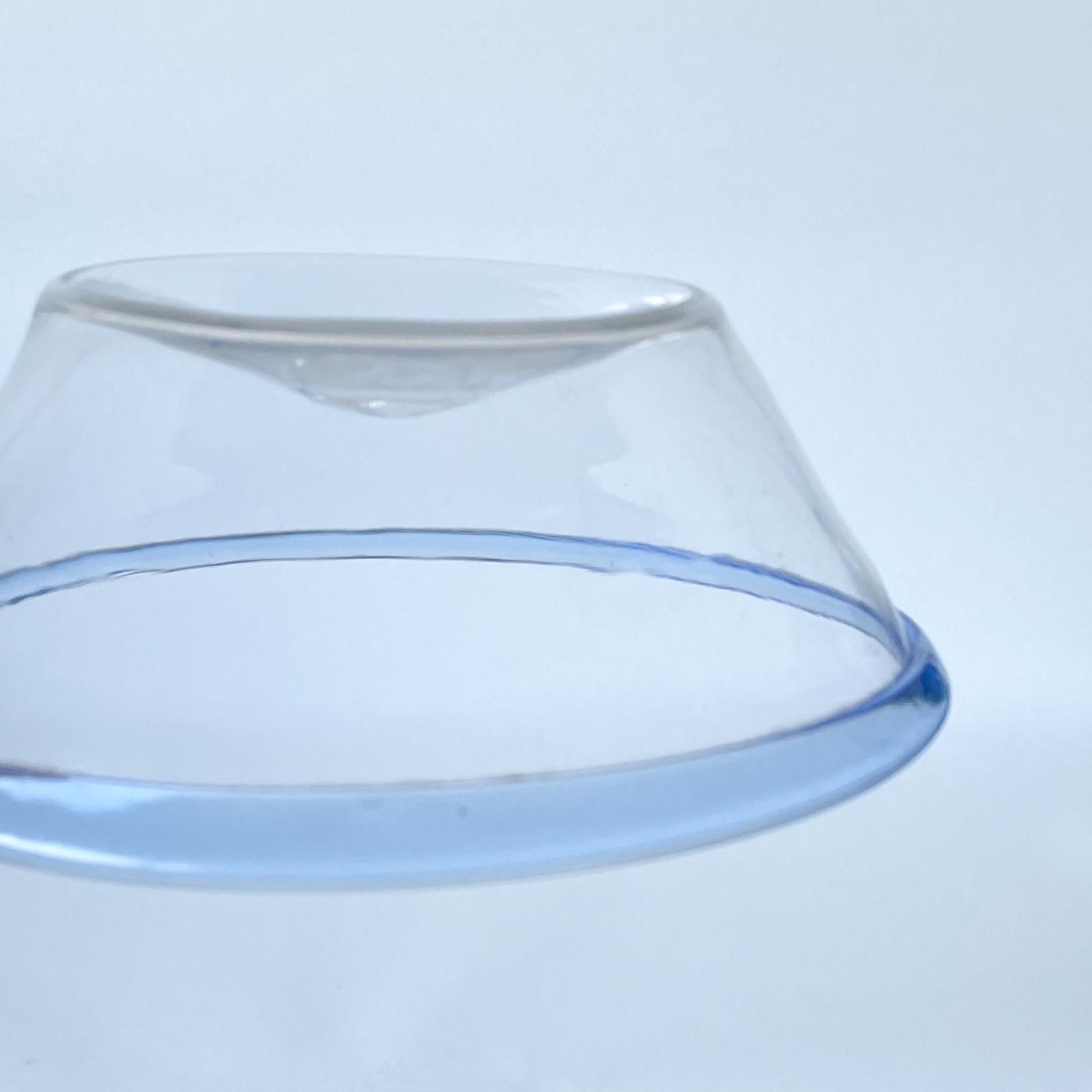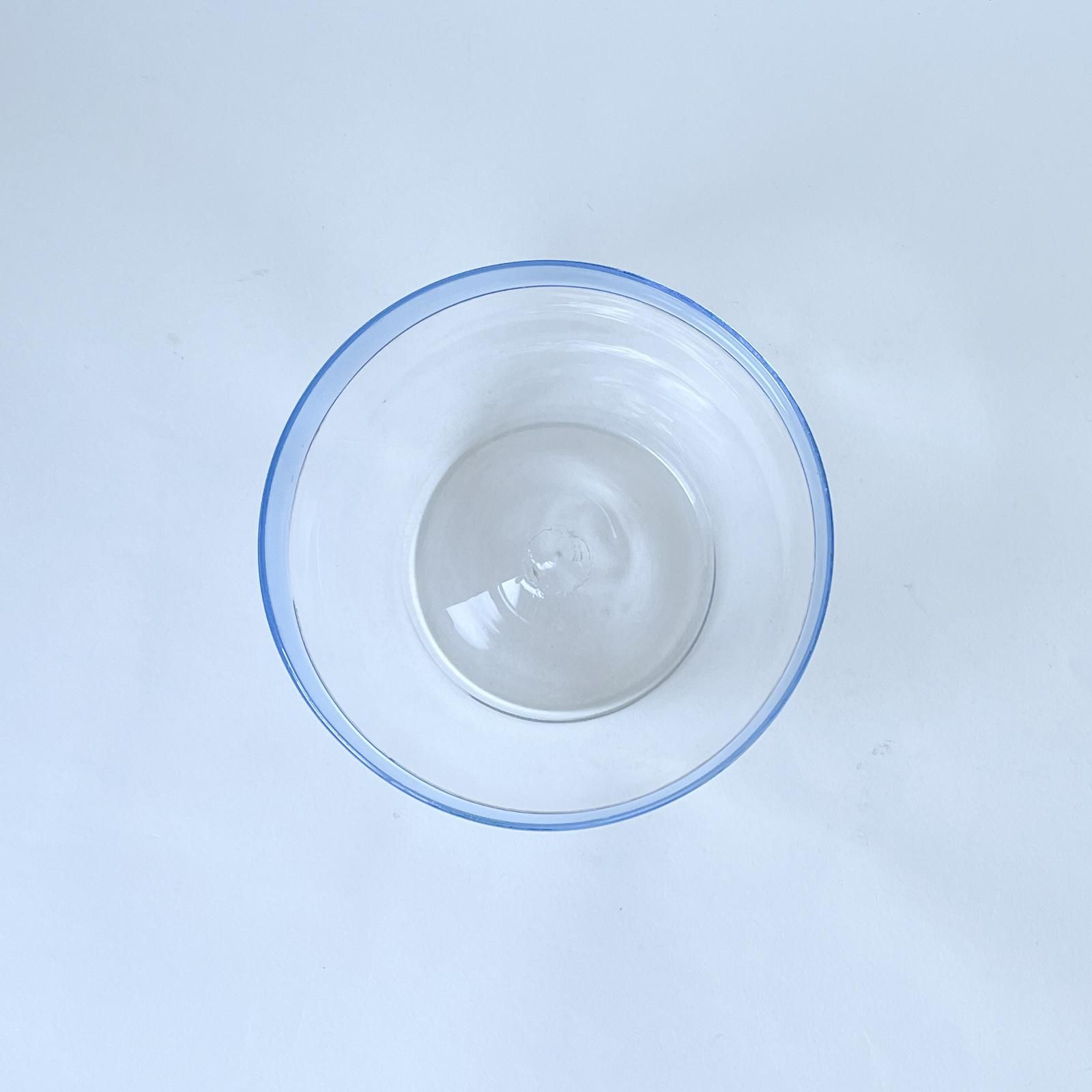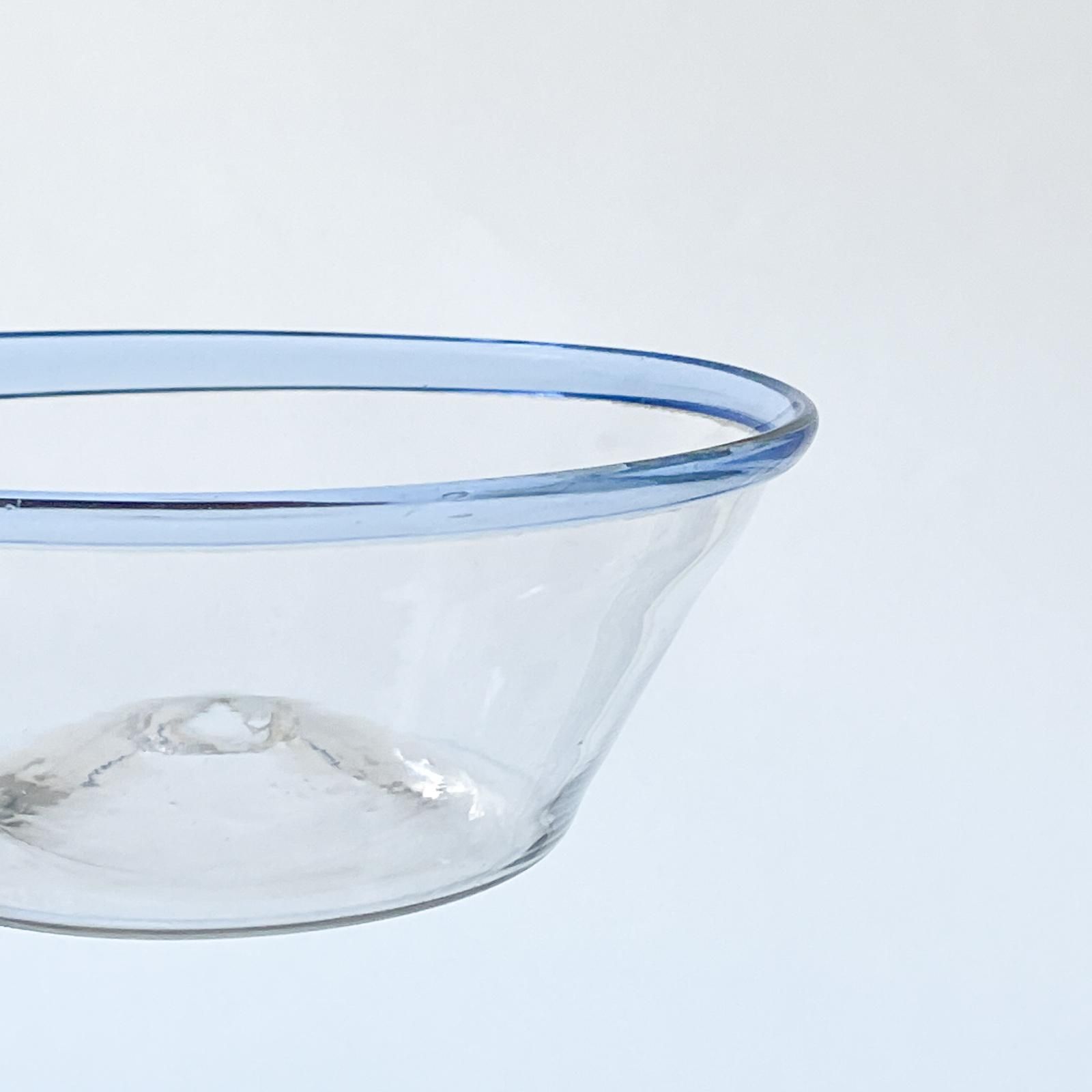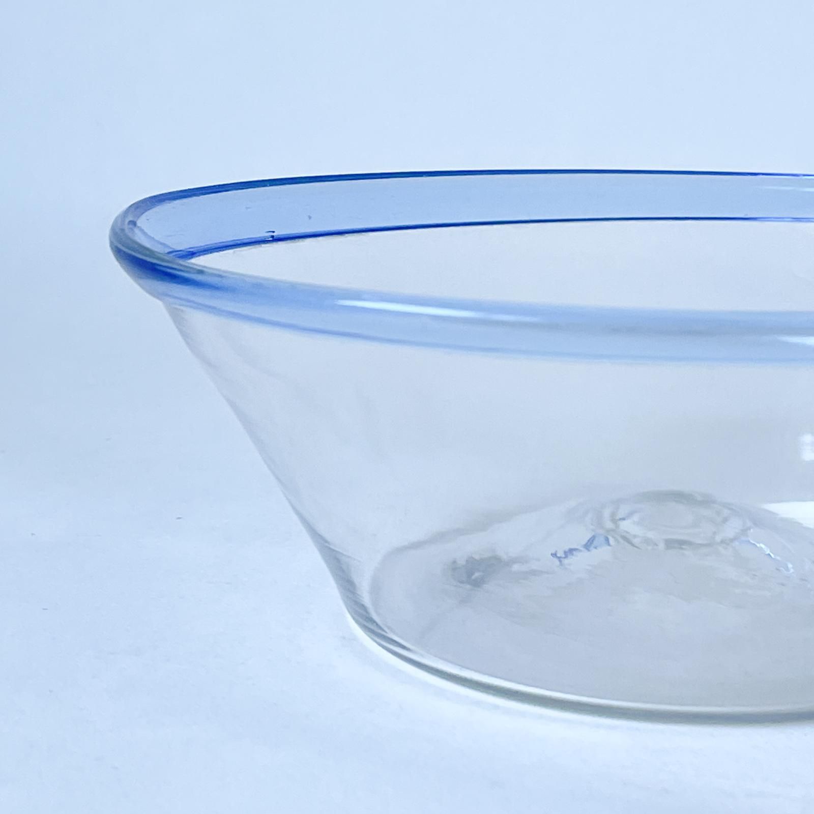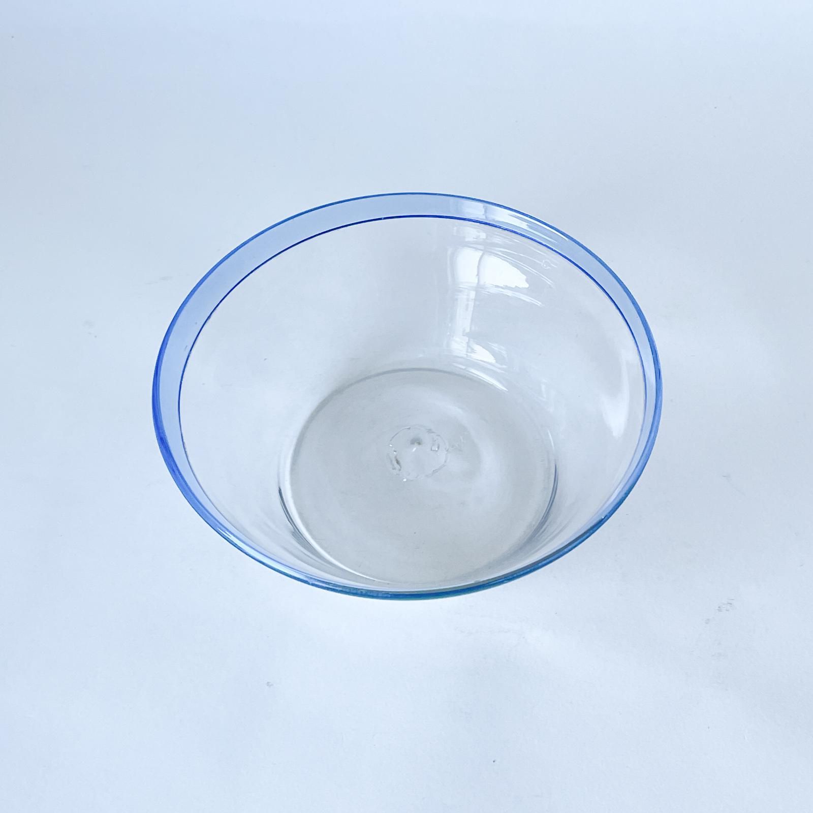 スウェーデンで1800年代後期から1920年代まで、手吹きで作られていたガラスのボウルです。グラスは無色透明、フチはブルーの配色です。薄手のためとても軽く、フチを二重に仕上げられたこの時代のグラスはとても好みのデザインです。