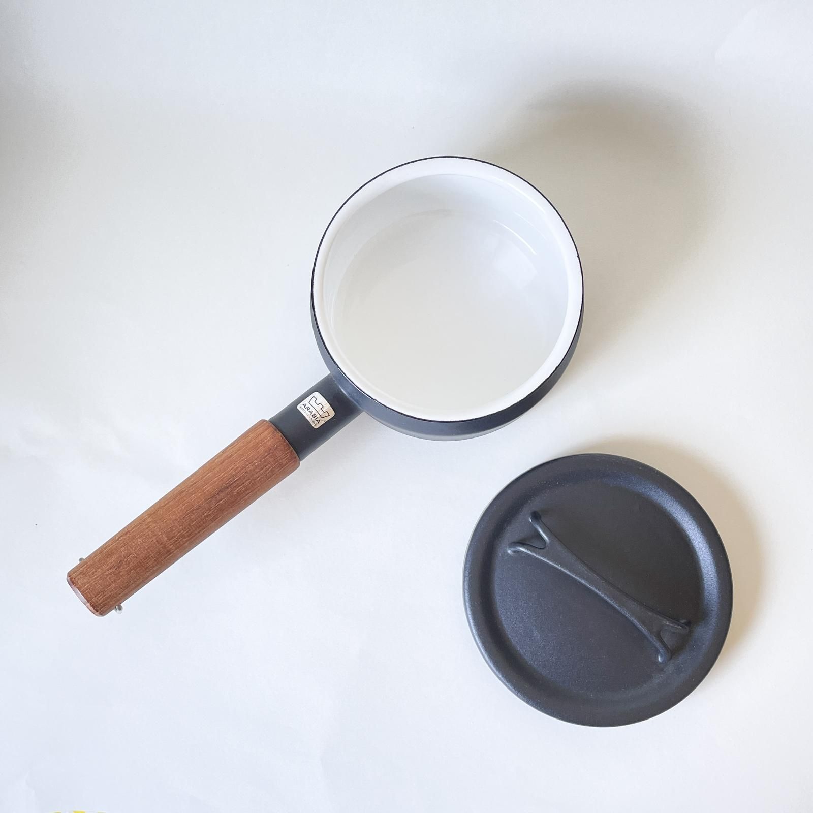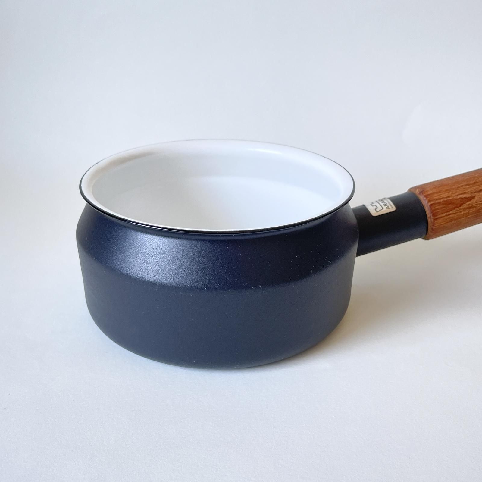 フィンランドで1960年-1970年代に生産されていた、フィネルのホーローの片手鍋です。デザイナーは、フィネルで数々のグッドデザインの調理器具をデザインしたセッポ・マッラト。このシリーズは、カラーバリエーションが豊富ですが、マットな黒は生産数が少ないレアアイテム。マットなブラックとチークのハンドルの組み合わせがシックで魅力的です。<br>フィンランドで使用されいたユーズド品のため、他は外側底面に使用感が見られますが、他はダメージは見られず、ARABIAのシールもきれいに残っていて、とても良好なコンディションです。