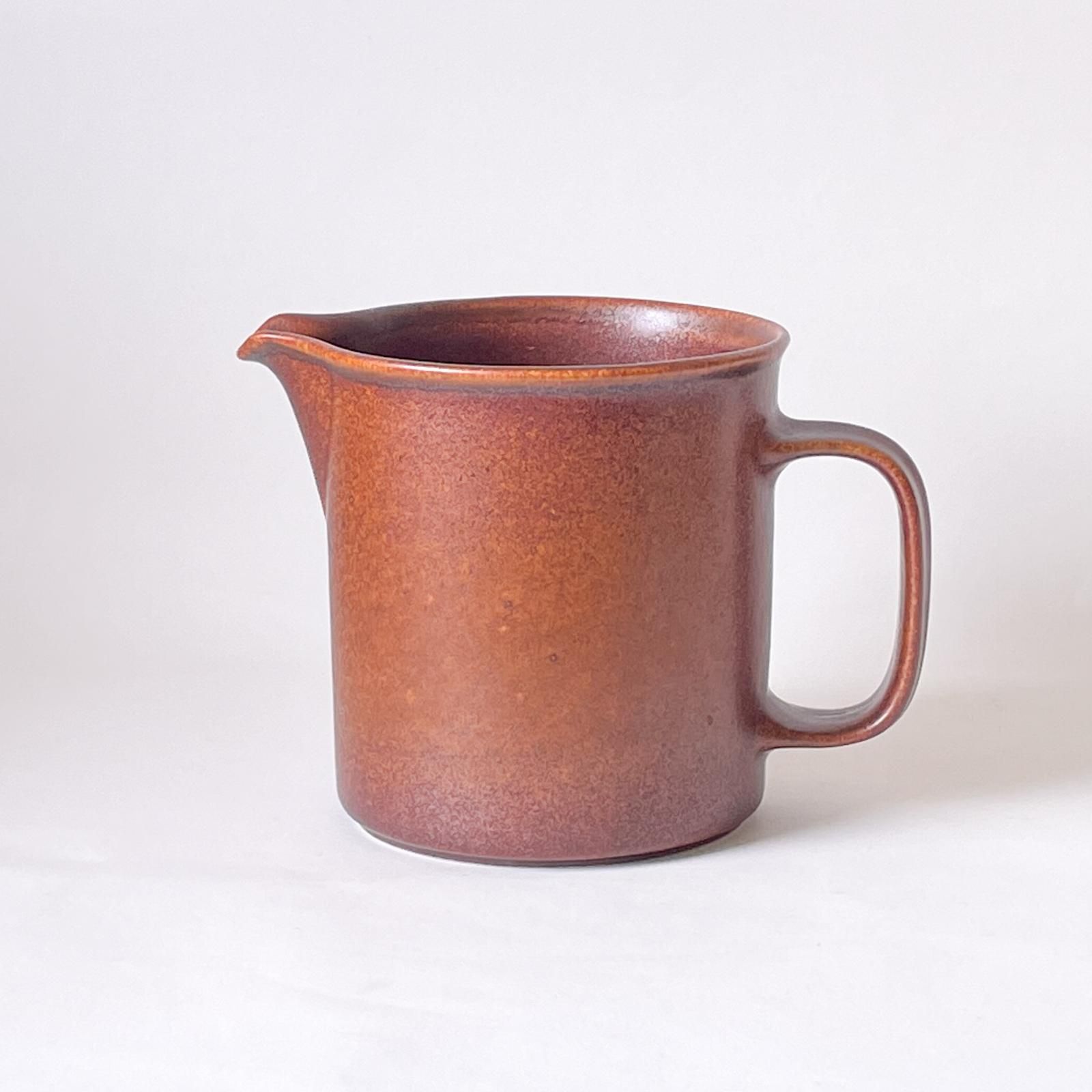 ARABIA窯で数々の名作を生み出したことで知られるデザイナー、ULLA PROCOPE | ウッラ・プロコペが手掛けたルスカシリーズのジャグです。「ルスカ」はフィンランドで紅葉の意味。釉薬の色の出方によって、自然な濃淡や模様が生まれ、一点一点表情に違いがあるのが魅力のシリーズです。このアイテムは濃淡の無い明るめのブラウンが美しいです。ピッチャーとして使う他、花器として使うのもおすすめです。