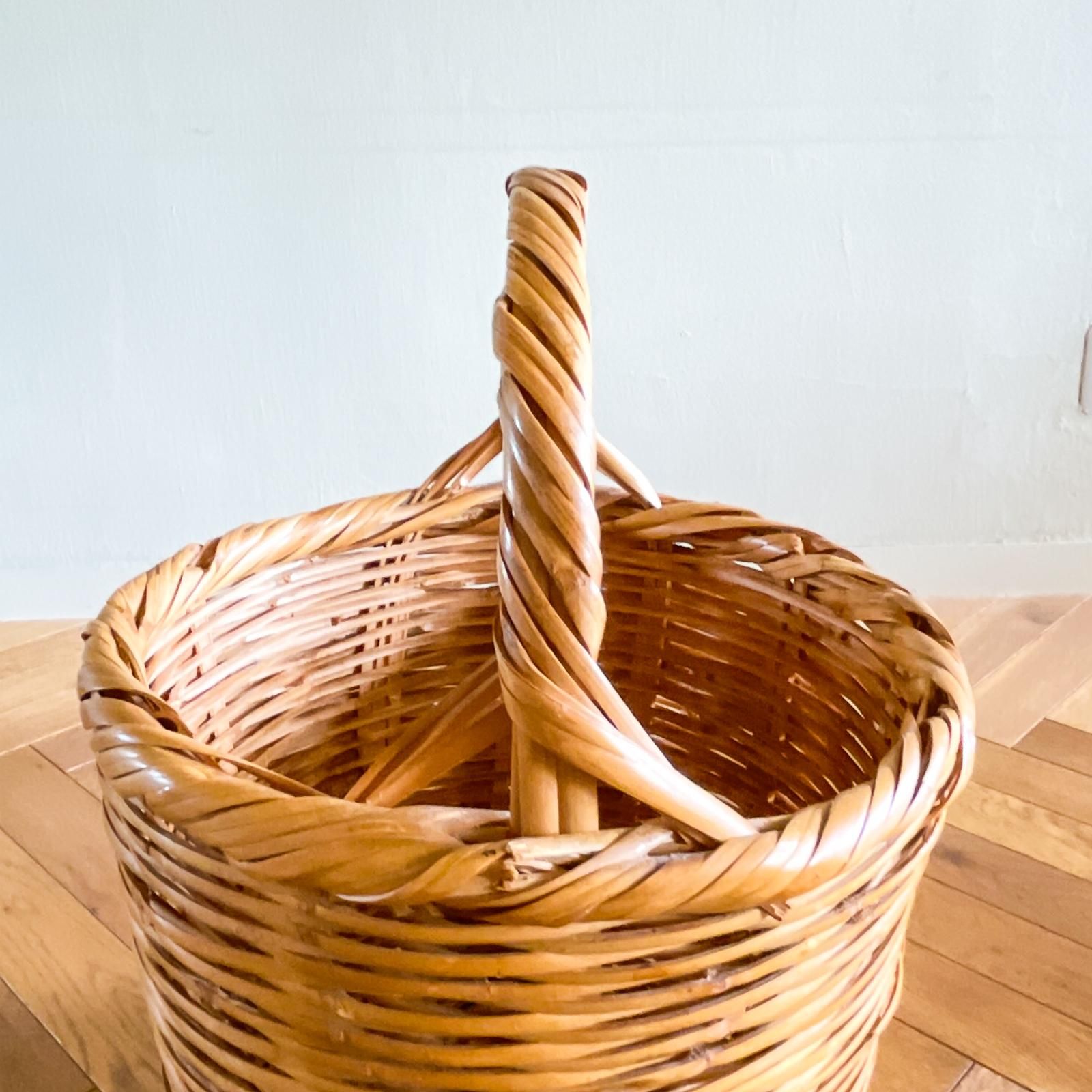スウェーデン製のヴィンテージバスケットです。スウェーデンで古くから作られていた、暮らしの道具としてのバスケットは、様々なサイズが作られていていました。ハンドルや本体のフチの仕上がりを見ていると、しっかりしたものを作ろうとした意気込みが感じられます。深さがしっかりある収納力たっぷりのこのバスケットに、いろいろ仕舞いながら部屋に置くと、いいインテリアになります。