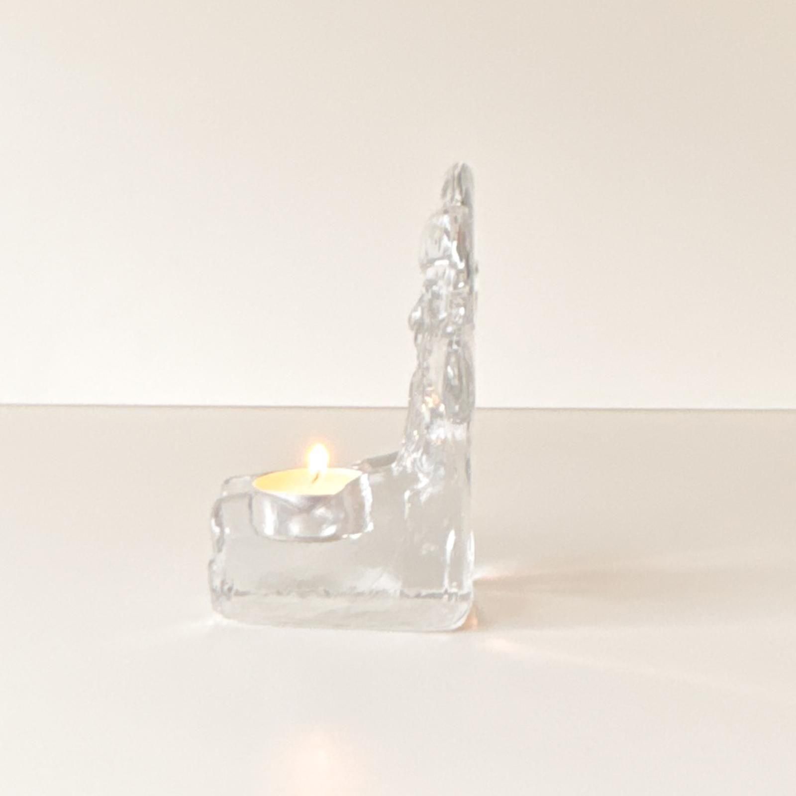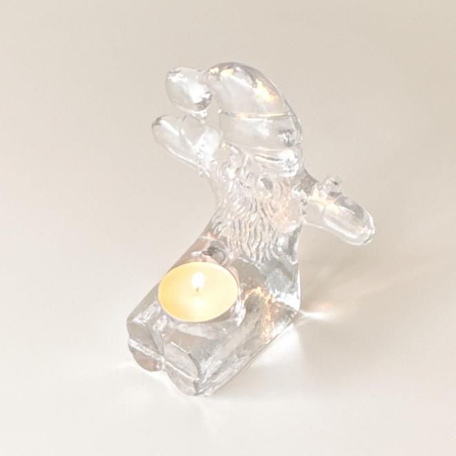 スウェーデンの老舗グラスメーカー・BODA社で、ハンドメイドによって作り出されていたサンタクロースをモチーフにしたガラス製のキャンドルホルダーです。サンタの長いヒゲや丸いほっぺ、そしてミトン型の手袋や帽子のボンボンなど、細部にまでこだわってデザインは、きっと楽しみながらデザインされたんだろうな、と思わされる仕上がりです。