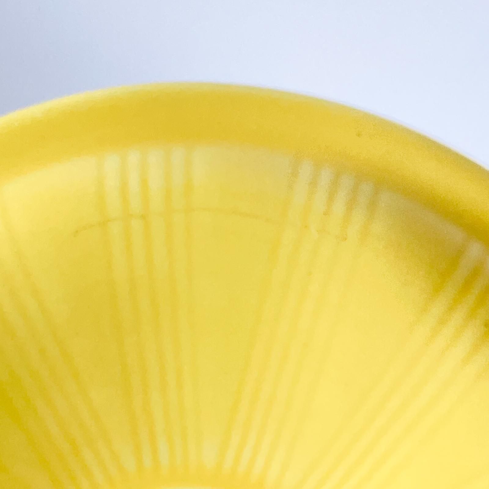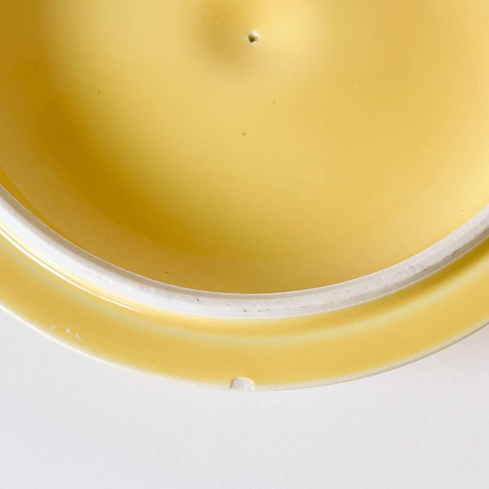 スウェーデンで使用されていたユーズド品のため、裏面にスレ跡が見られます。また製造上にできた点状の黒点が表に見られ、フタのフチに小さなカケが見られます。また製造工程で出来たフチがガタガタした箇所が見られます(画像にてご確認ください)。他は目立つダメージはなく、良好なコンディションです。