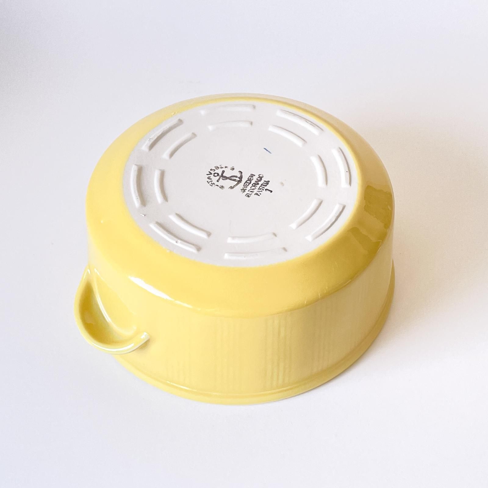 スウェーデン・GUSTAVSBERG|グスタフスベリ社で1950年代から1960年代にかけて製造されていた、オーバルボウルです。「ELDORADO」というこのシリーズをデザインしたのは、耐熱シリーズ「PYRO」シリーズのデザイナーとしても知られるウィルヘルム・コーゲ。均等に配置されたストライプ模様と、きれいなカスタードイエローの合わせが魅力的です。