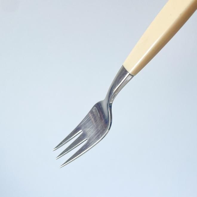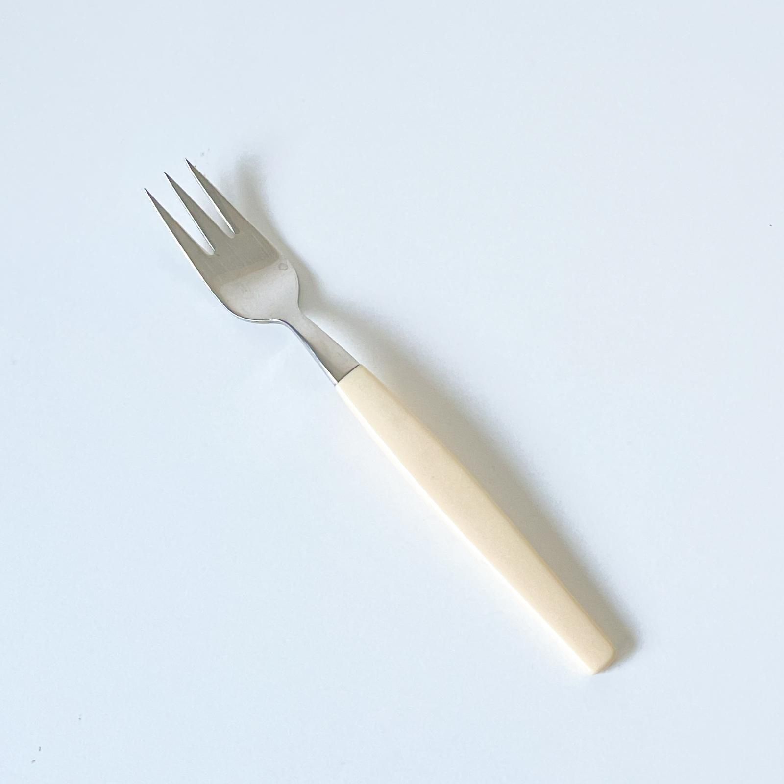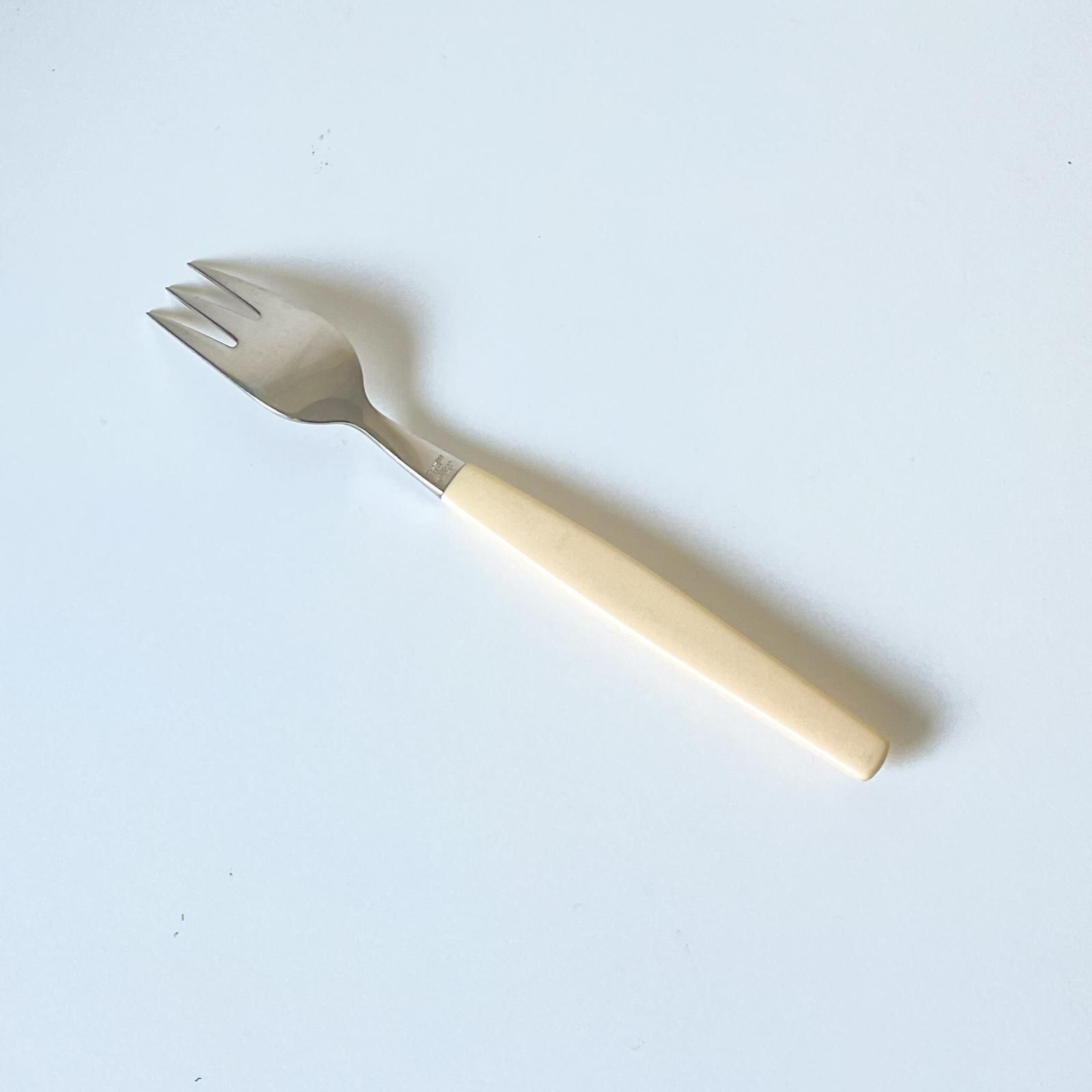 スウェーデンの NILS JOHAN | ニルス ヨハン社 で1970年代に作られていたフォークです。プラスティックのアイボリー色のハンドルが優しい印象で、テーブルコーディネイトのアクセントになります。