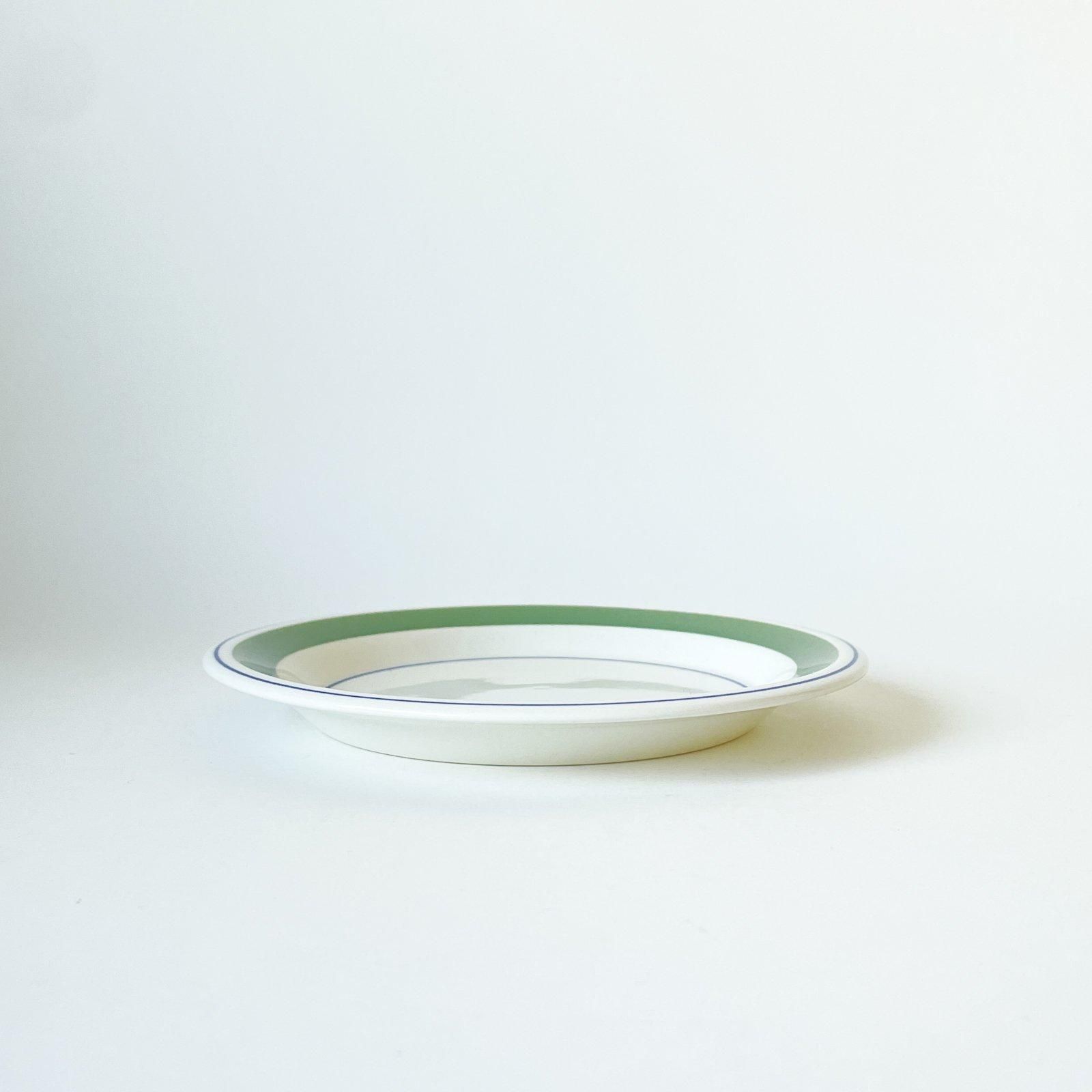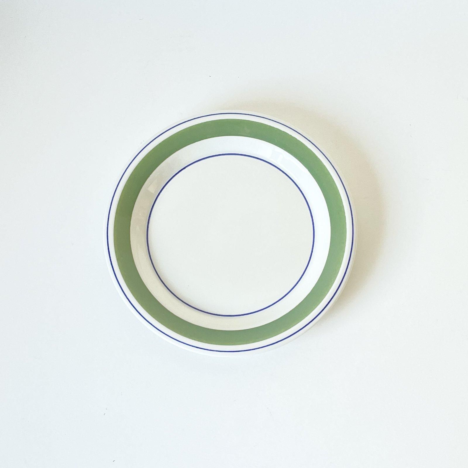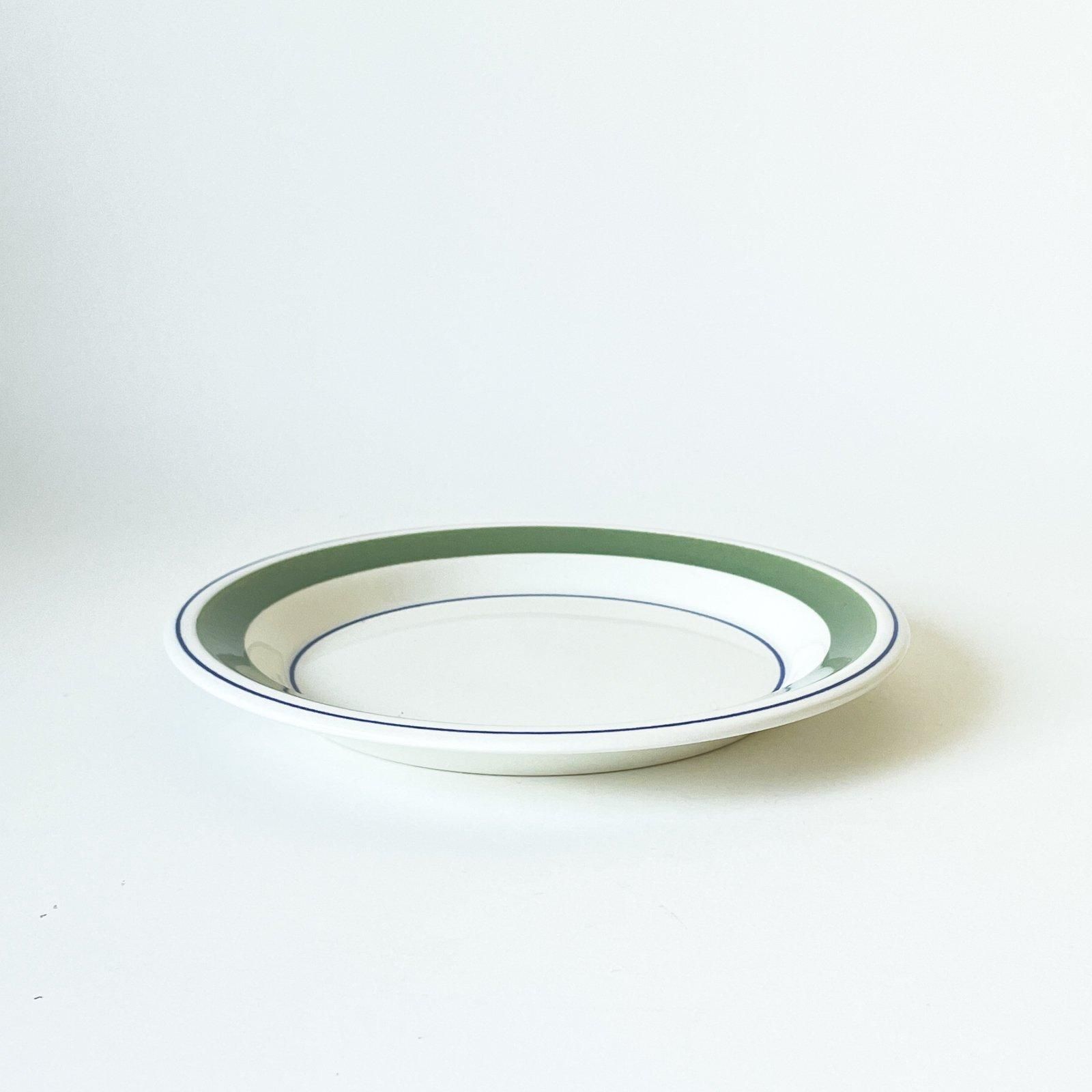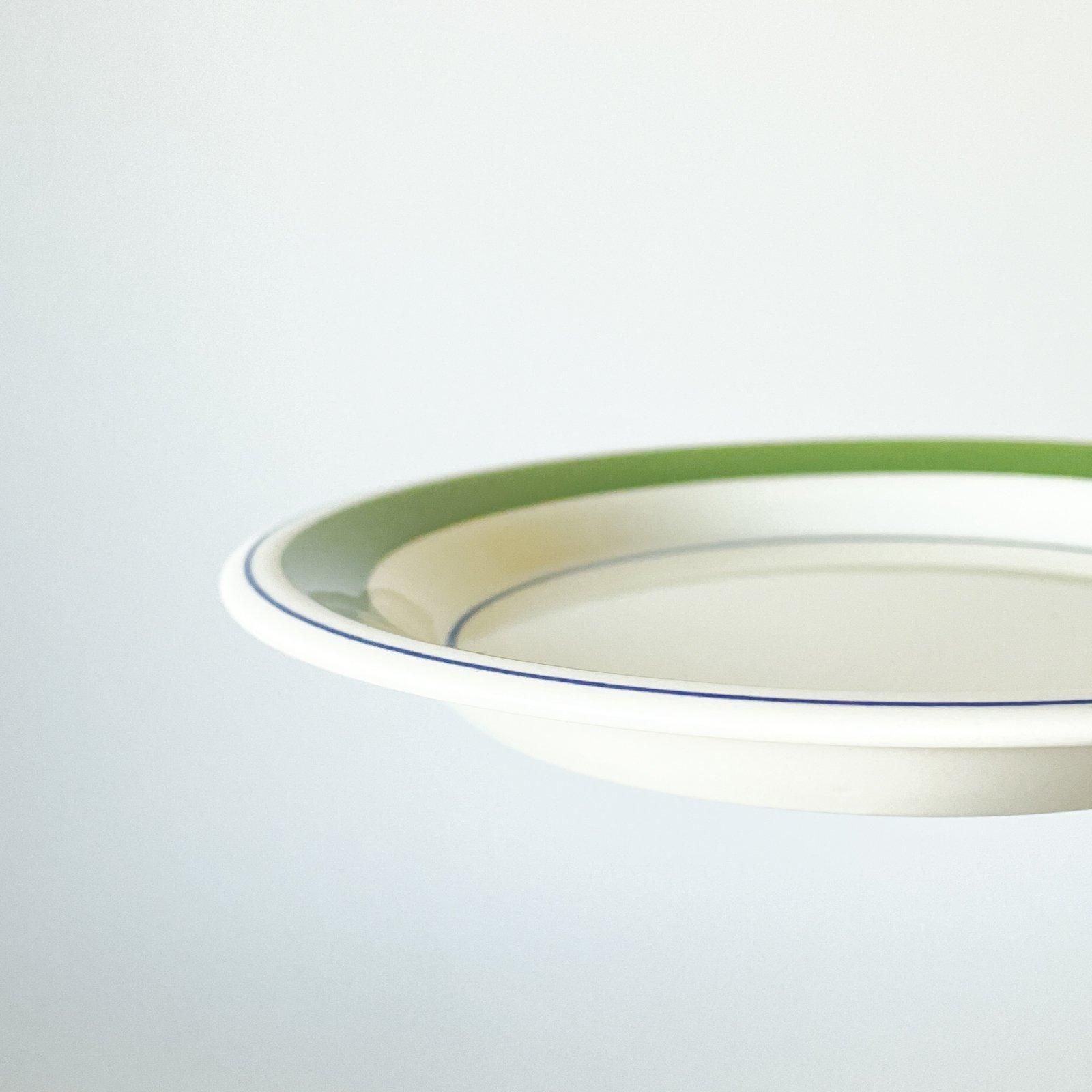 ARABIA社製の FAENZA | ファエンツァシリーズのプレートです。白地にライトグリーンとブルーのラインのみで構成されたシンプルなデザインの器です。この図柄をデザインしたのはINKERI SEPPARA | インケリ・セッパラ。製造されていたのは1974年-1979年の6年間という短い期間でした。