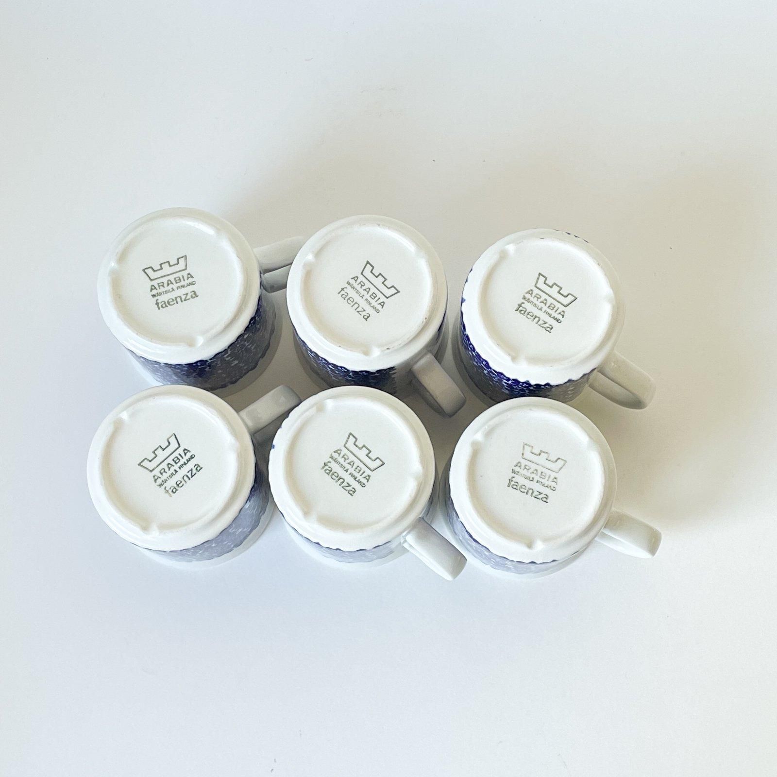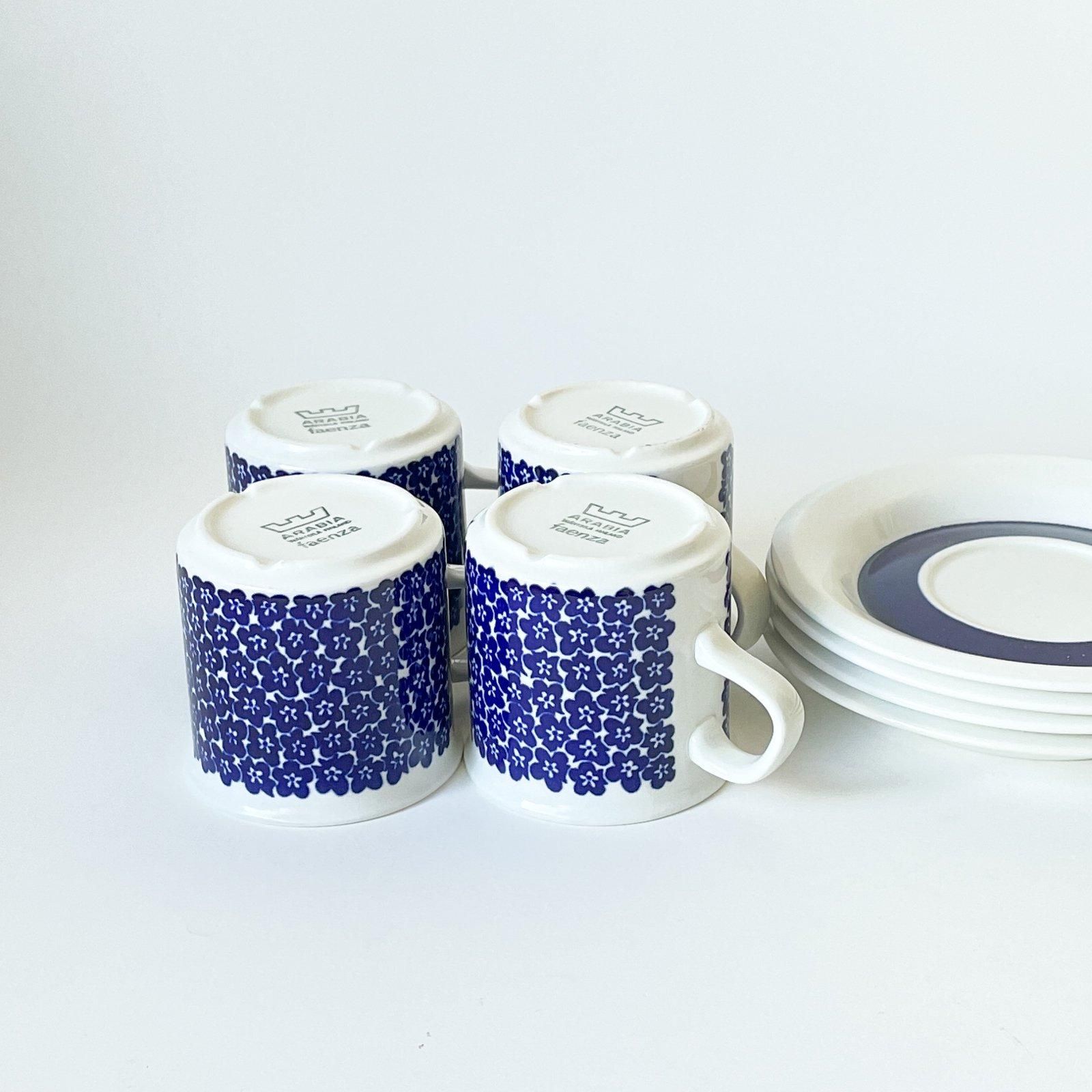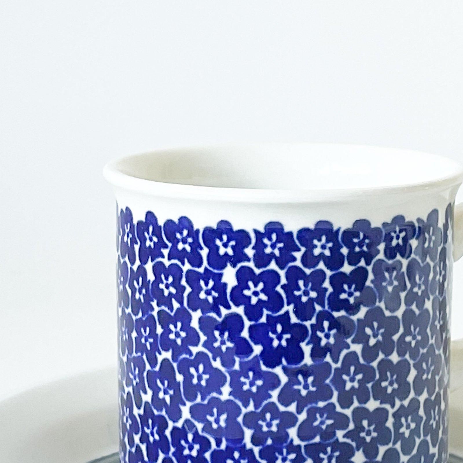 ARABIA社製のFAENZA | ファエンツァシリーズのエスプレッソカップ&ソーサーです。鮮やかなブルーの小花がぎゅっと重なり合った模様は、このシリーズの中でも人気の絵柄です。この図柄をデザインしたのは、INKERI SEPPARA | インケリ・セッパラ で、製造されていたのは1973年-1979年の6年間という短い期間でした。コーヒーやティーカップは時々見つけますが、エスプレッソカップはなかなか見つからないレアアイテムです。