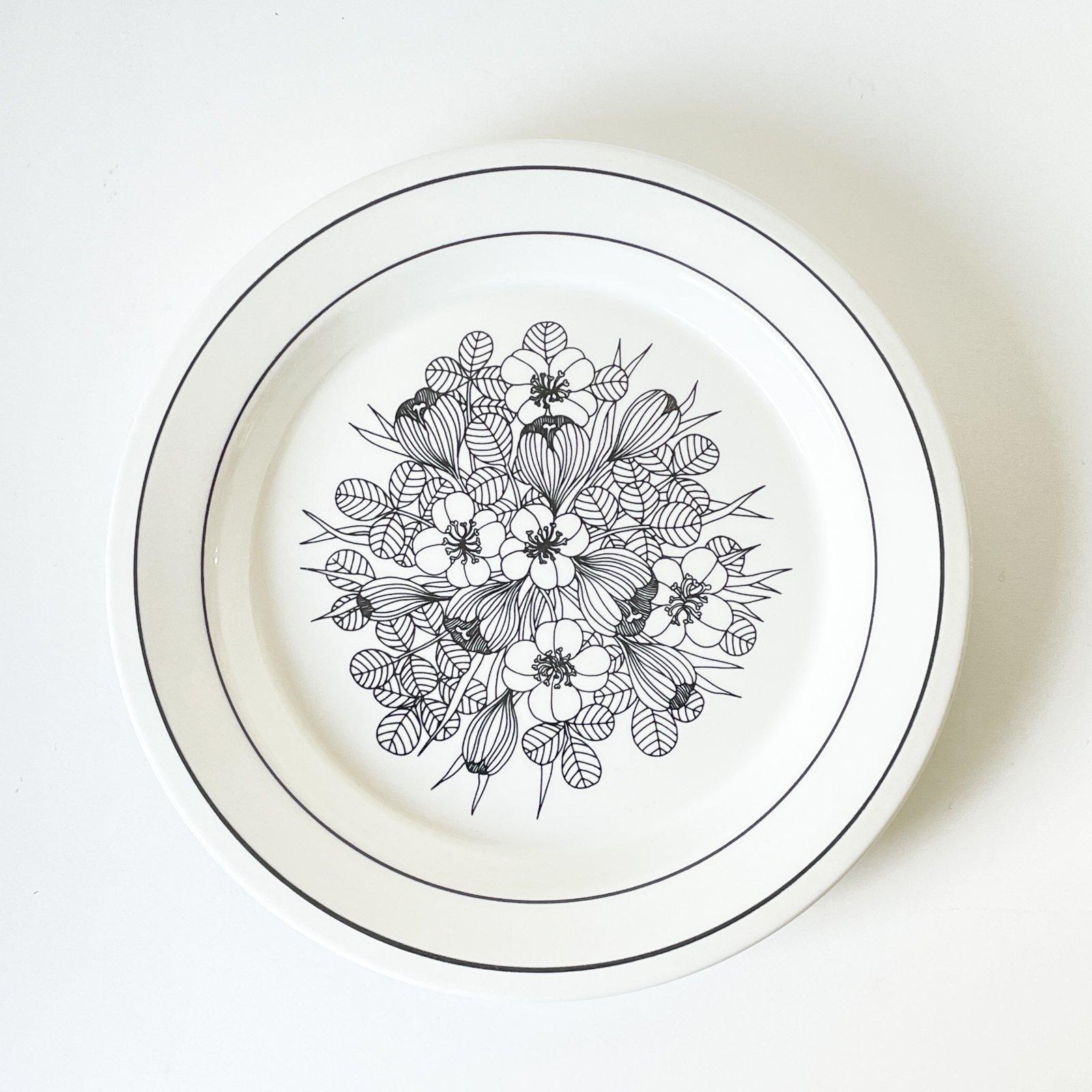 KROKUS | クロッカスシリーズの24cmの大皿です。ARABIAで1968年から1969年の2年間という、とても短い期間に生産されていたクロッカスシリーズですが、絵柄のデザインは、ARABIAで数々の名作を生み出したESTERI TOMURA | エステリ・トムラによるものです。すっきりしたフォルムのプレートに、黒一色で描かれたクロッカスの線画がシックで魅力的な逸品です。北欧ではクロッカスは春になると野原に咲き始め、春の訪れを告げてくれる、とても身近な野の花なのです。
