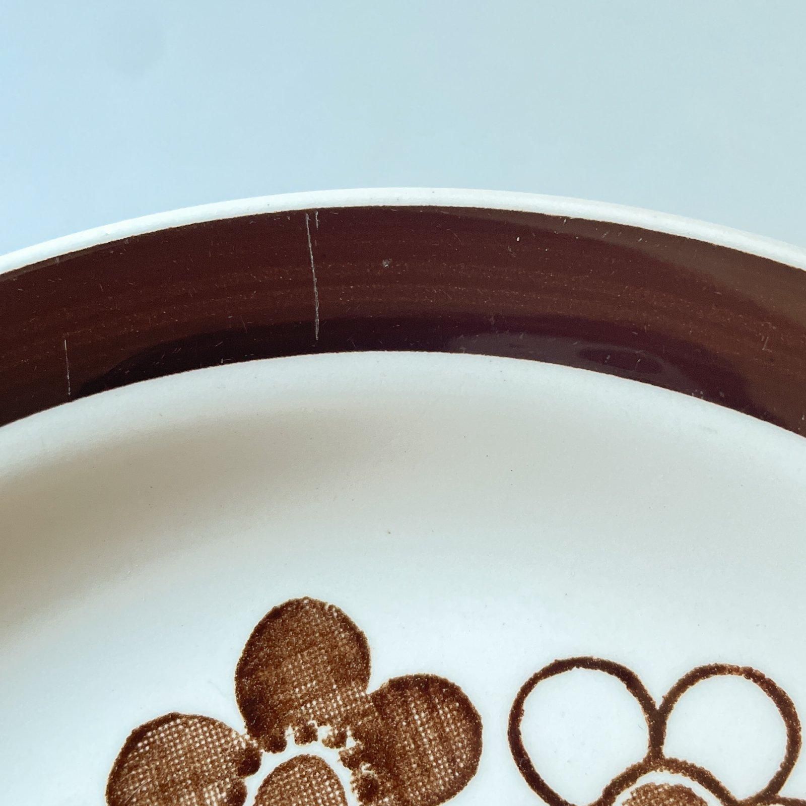 スウェーデンで使用されていたユーズド品のため、ブラウンのフチに線状の傷が見られます(最後の画像をご確認ください)。他はカケなどの目立つダメージは無く良い状態です。裏面には製造上の針跡があります。