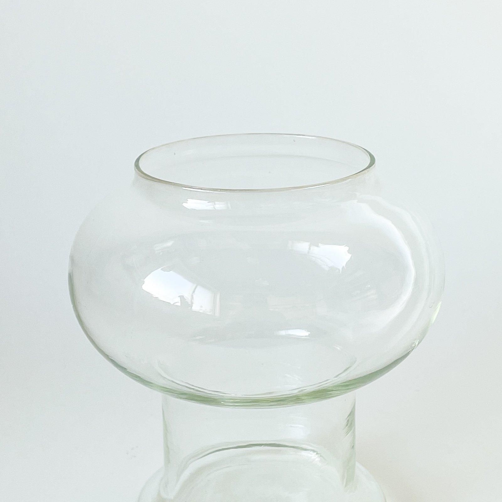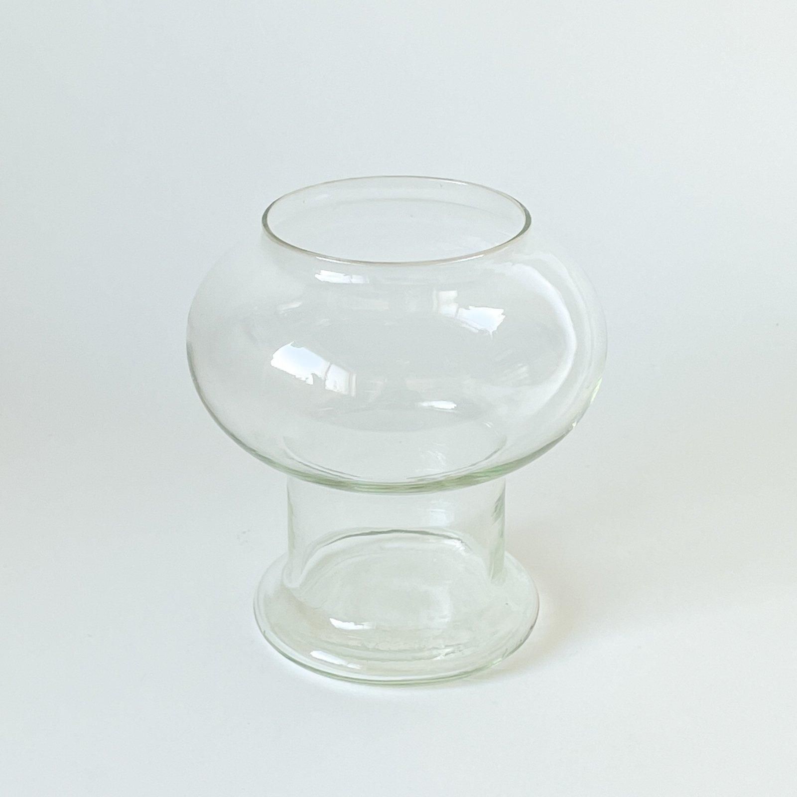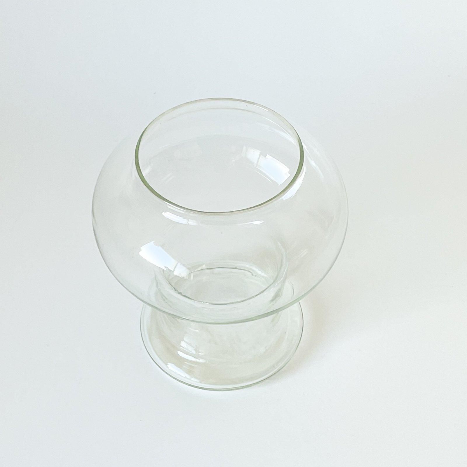 スウェーデンで見つけたグラス製のフラワーベースです。球体と円柱を組み合わせたようなおおらかなデザインが魅力的です。植物を生ける他、カップインキャンドルを入れて、キャンドルホルダーとして使うのもおすすめです。