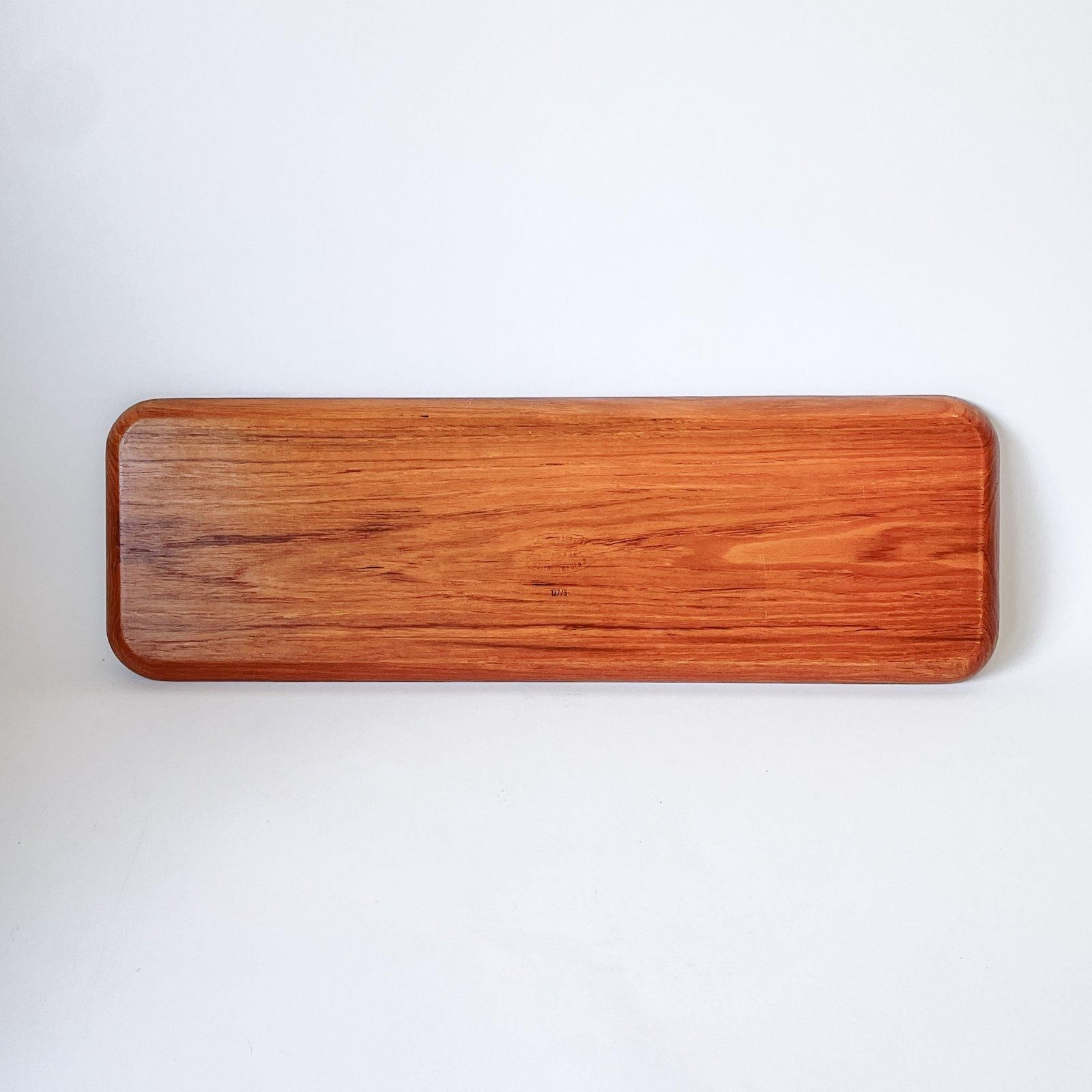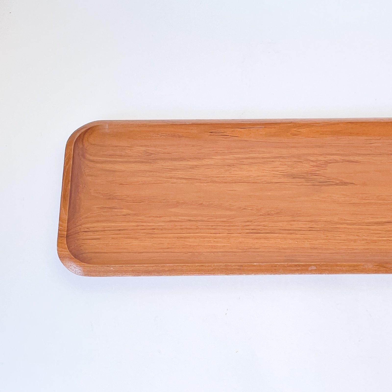 スウェーデン製の長方形のチークトレーです。しっかりと厚みのあるチーク材のトレーは、四隅とフチを丸くカーブさせながら立ち上げた、シンプルながらチークの美しさが際立つデザインです。