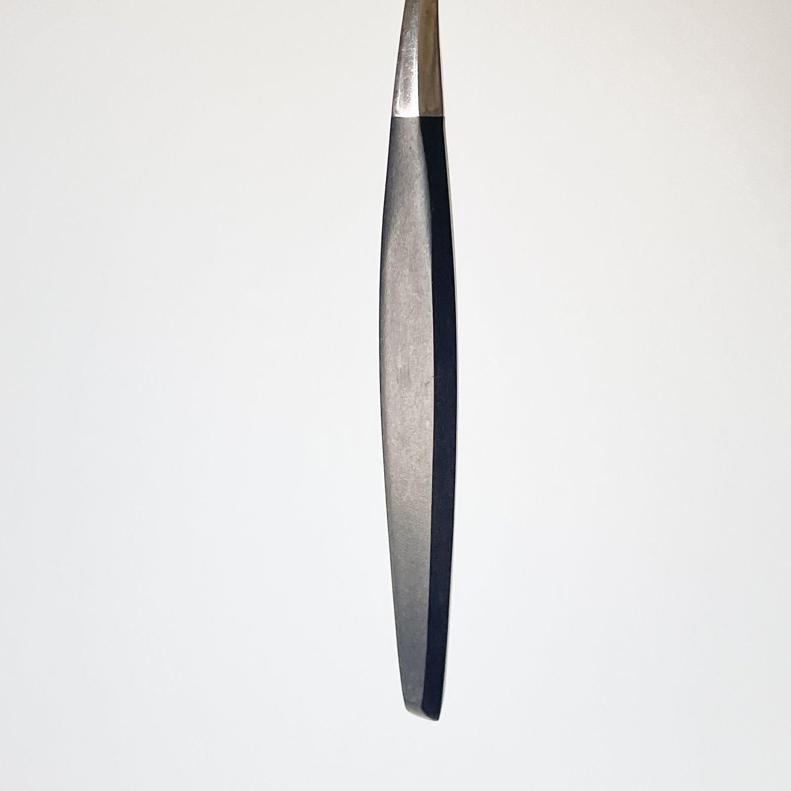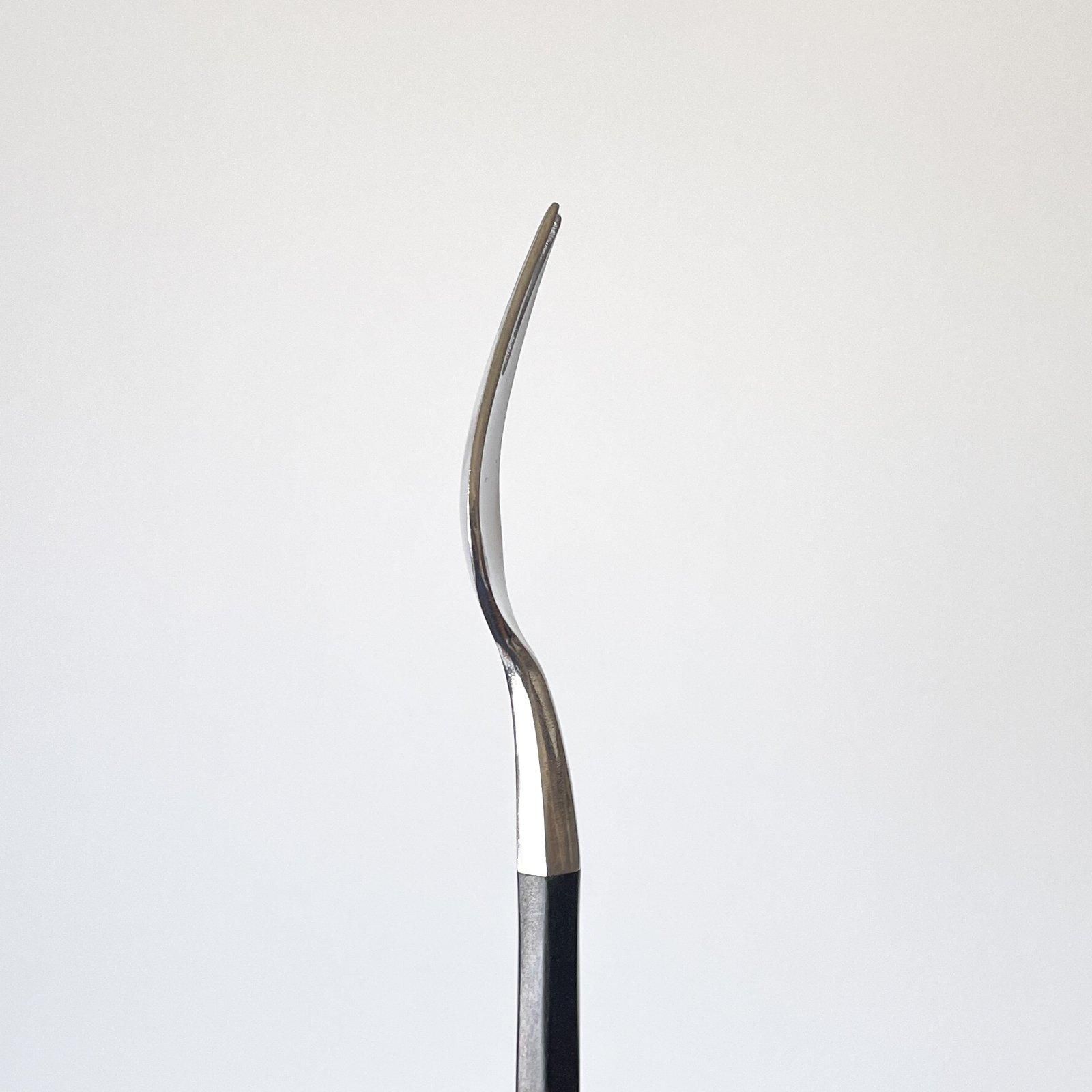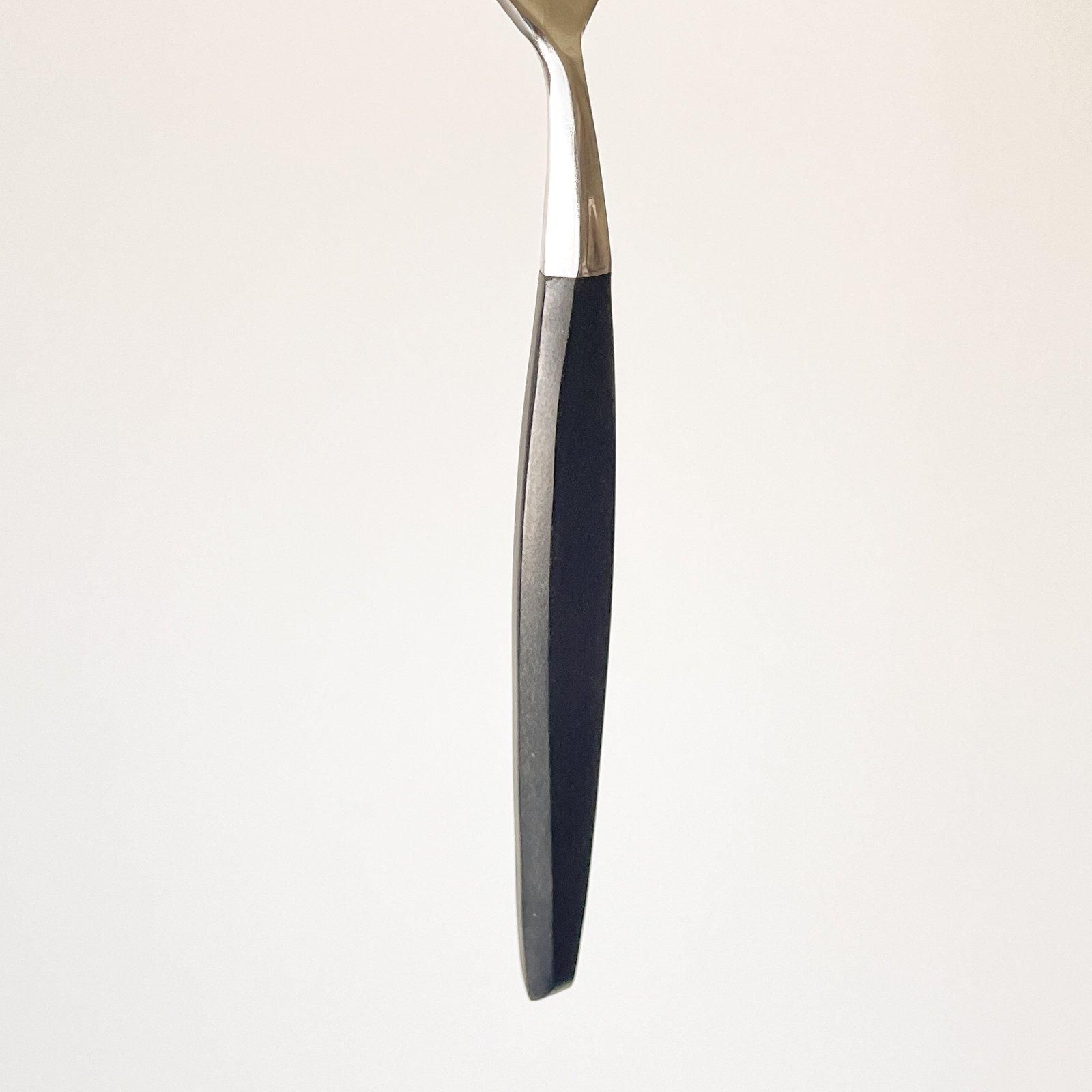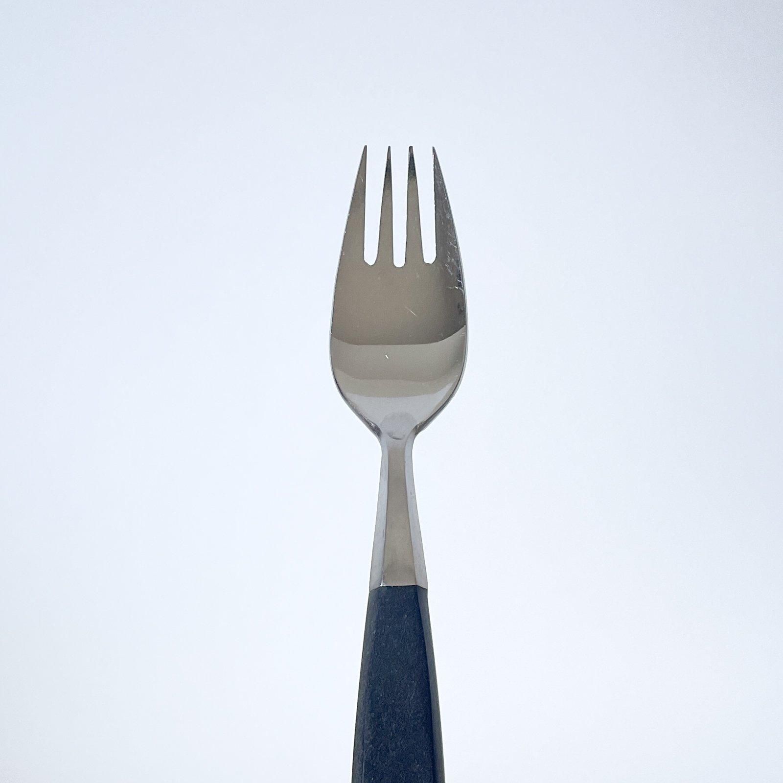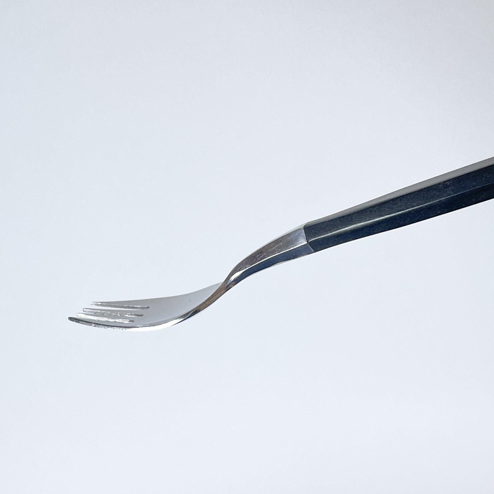 スウェーデンで1970年代に作られていたディナーフォークです。ハンドルは六面体に削られて立体感があります。キュッと細いくびれやブラックの柄がキリッとした印象で、テーブルコーディネイトのいいアクセントになります。