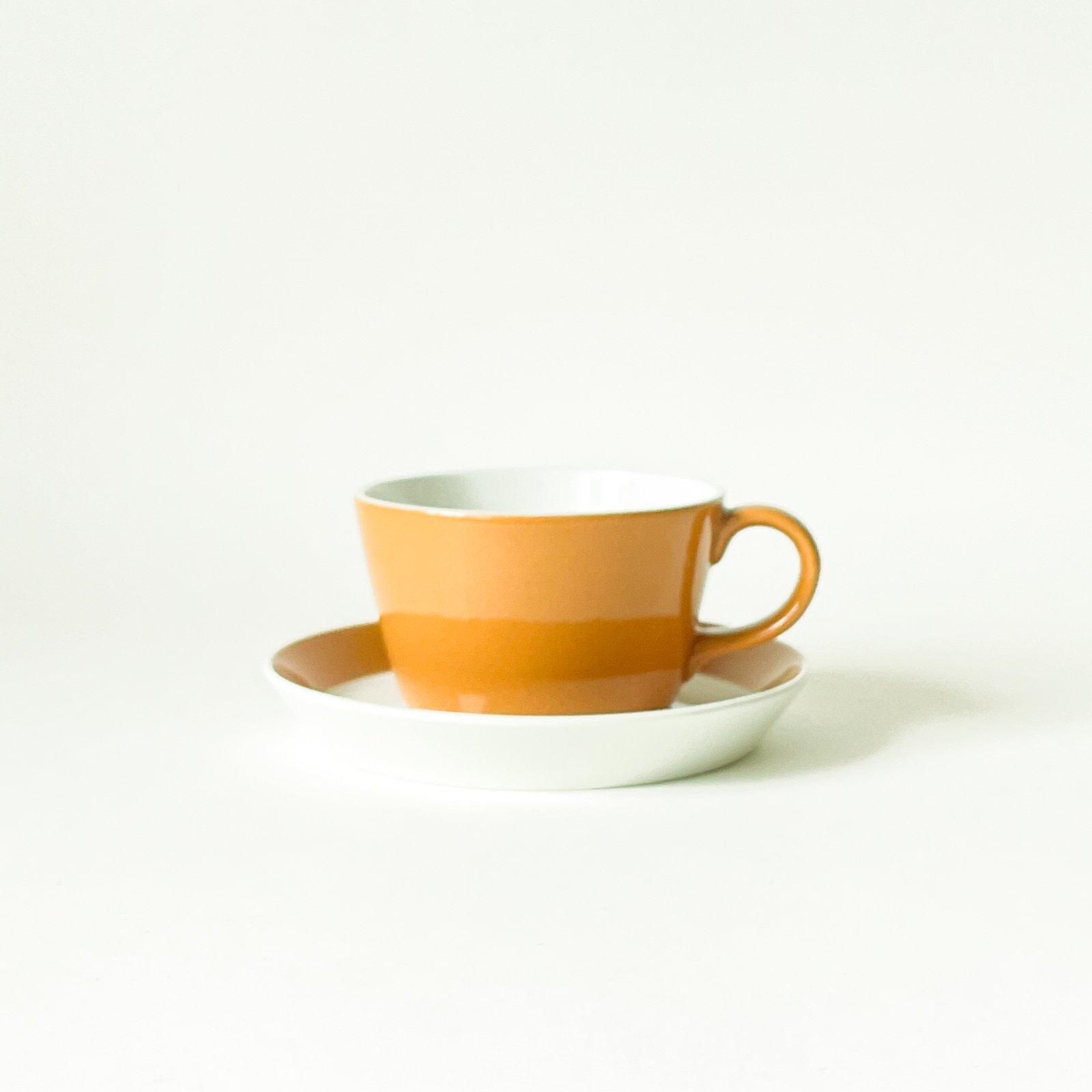 ARABIAで1964年から1974年の間に生産されていた、APRIKOOSI | アプリクーシシリーズのカップ&ソーサーです。当時ARABIAでデザインディレクターだったカイ・フランクの元でデザインをしていた、カーリナ・アホによるデザイン。すっきりしたフォルムとアプリコットカラーの色使いがとても魅力的です。