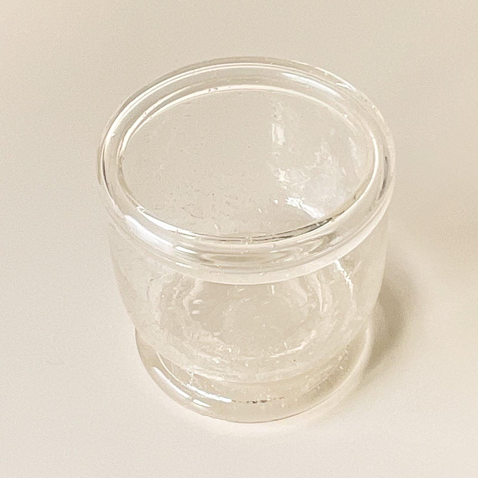 ハンドメイドで作られたガラス作品は、フチが外側にくるりと巻かれた様子がなんとも魅力的で、全体に入った細かな気泡の現れ方が美しい逸品です。