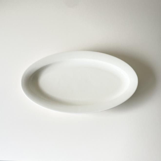 ARABIAのHARLEKIN | ハーレキンシリーズのオーバルプレートです。アイボリー色の生地とやわらかなカーブを描いたフチが魅力的です。丸型のお皿が並ぶ食卓に、オーバル型のプレートがひとつあると、テーブルコーディネイトのアクセントになっておすすめです。アイボリー色の何気ないプレートは、他の器と合わせやすく日常づかいに適しています。