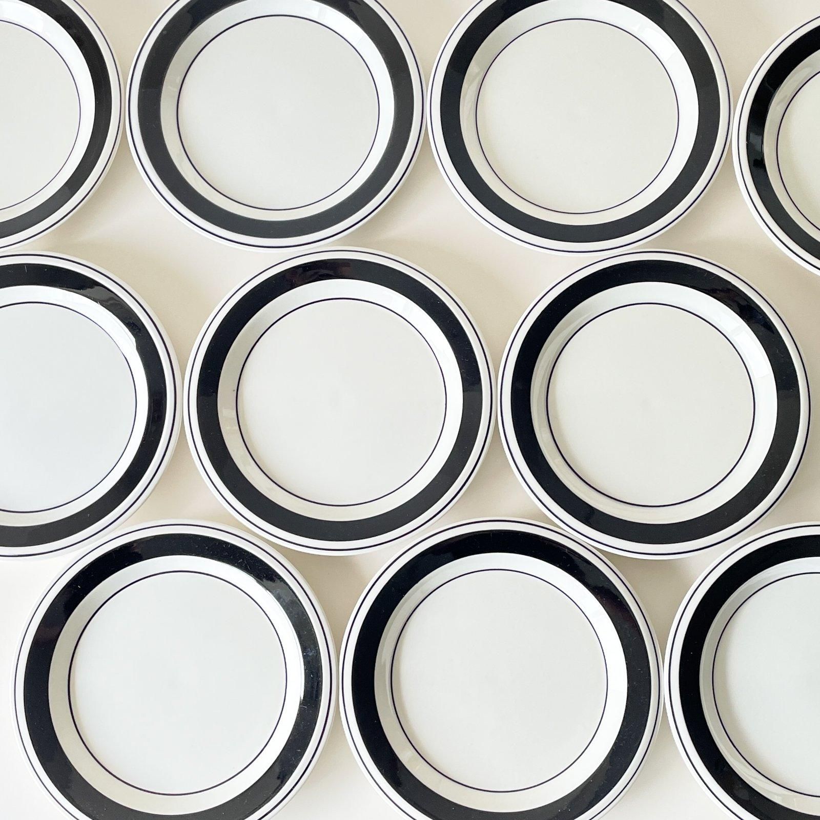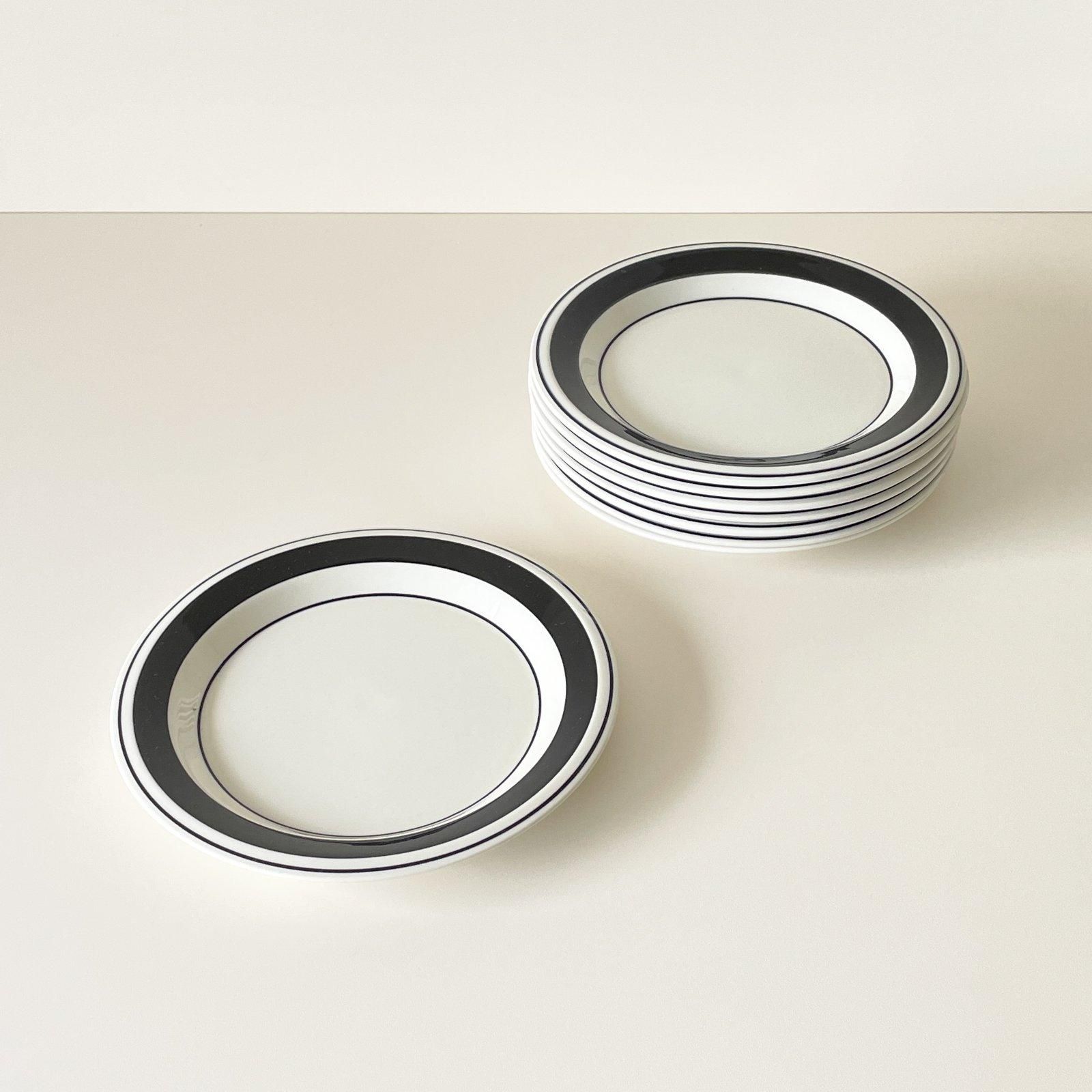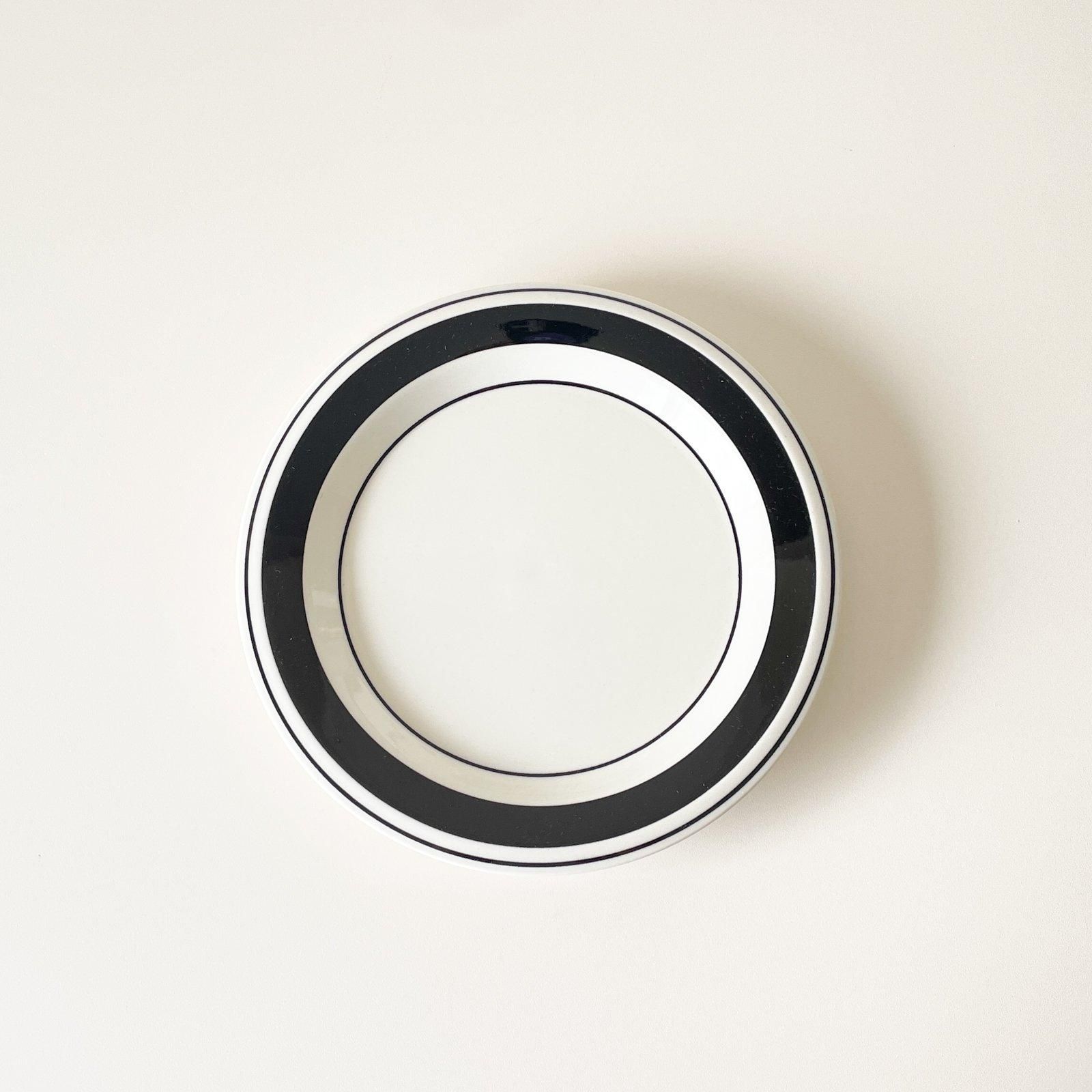 ARABIAのFAENZA | ファエンツァシリーズの17cmプレートです。白地に3本の幅の違う黒いラインのみで構成された、シックなモノトーンの器です。この図柄をデザインしたのはINKERI SEPPARA | インケリ・セッパラで、製造されていたのは1974年から1979年の6年間という短い期間でした。