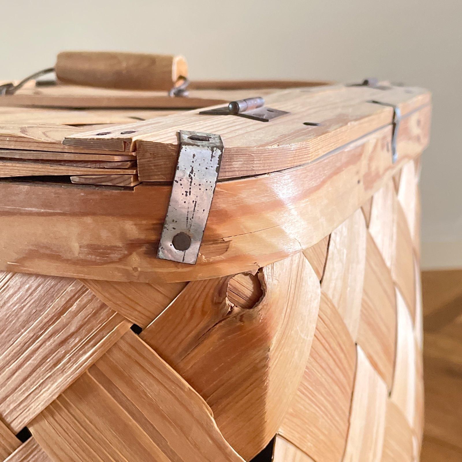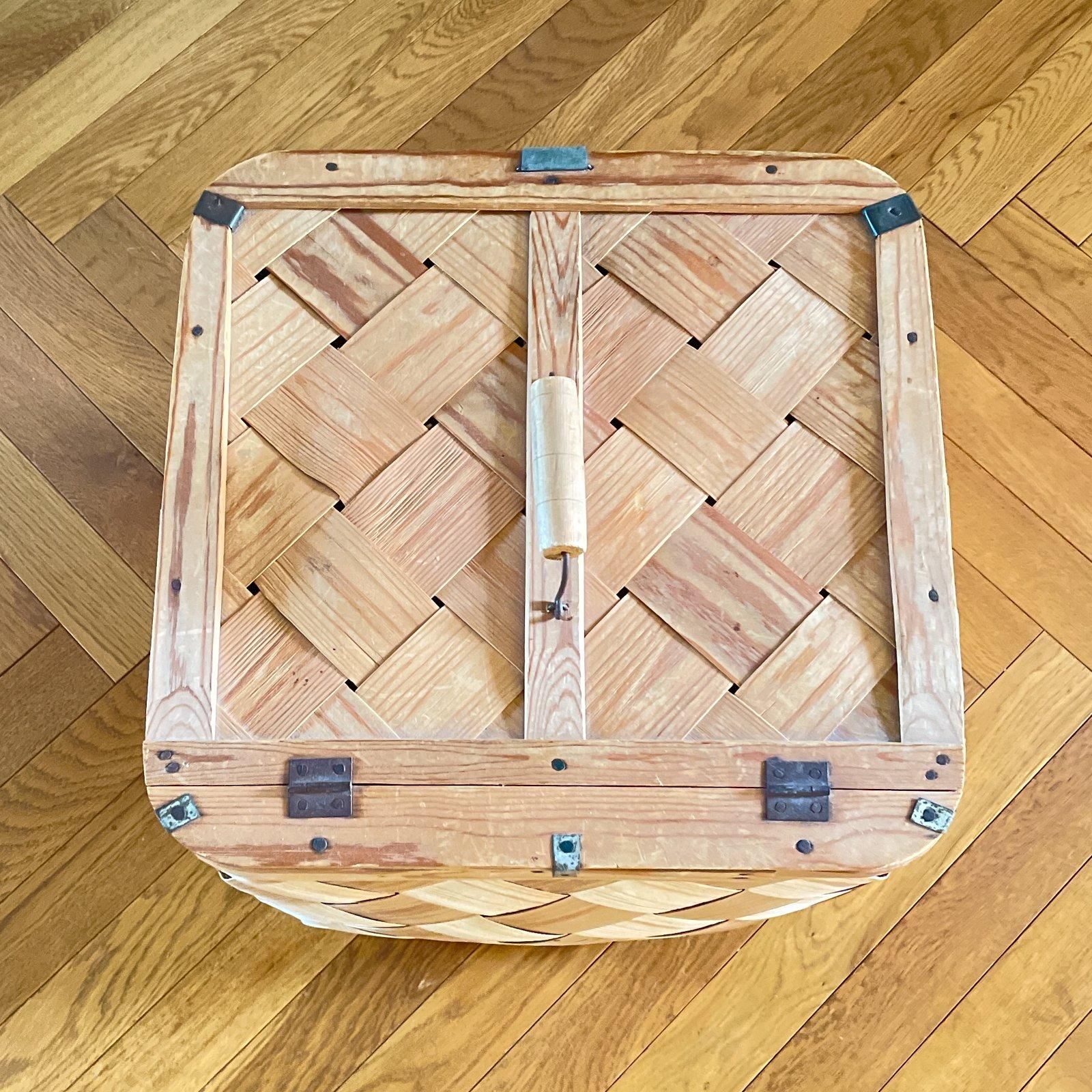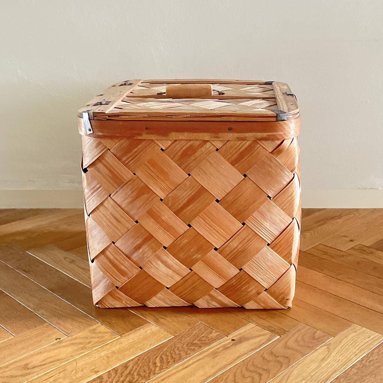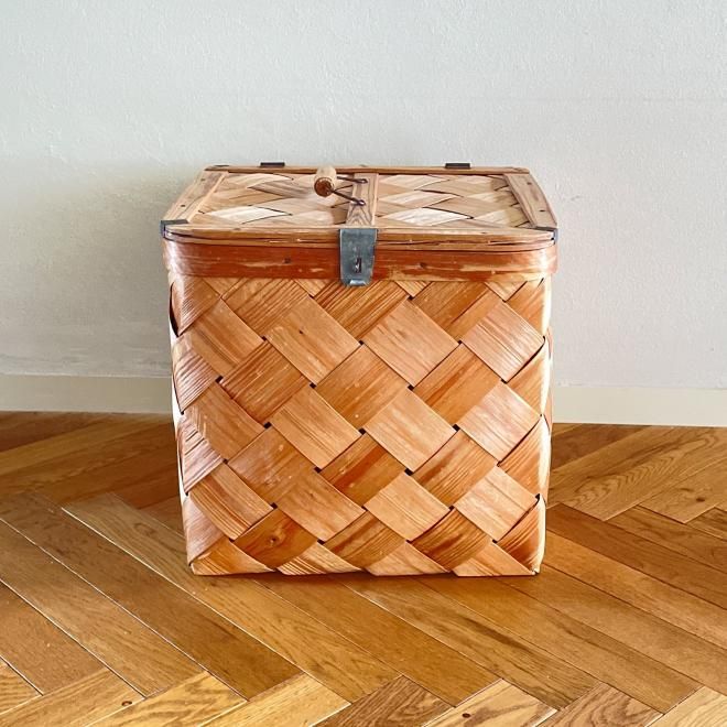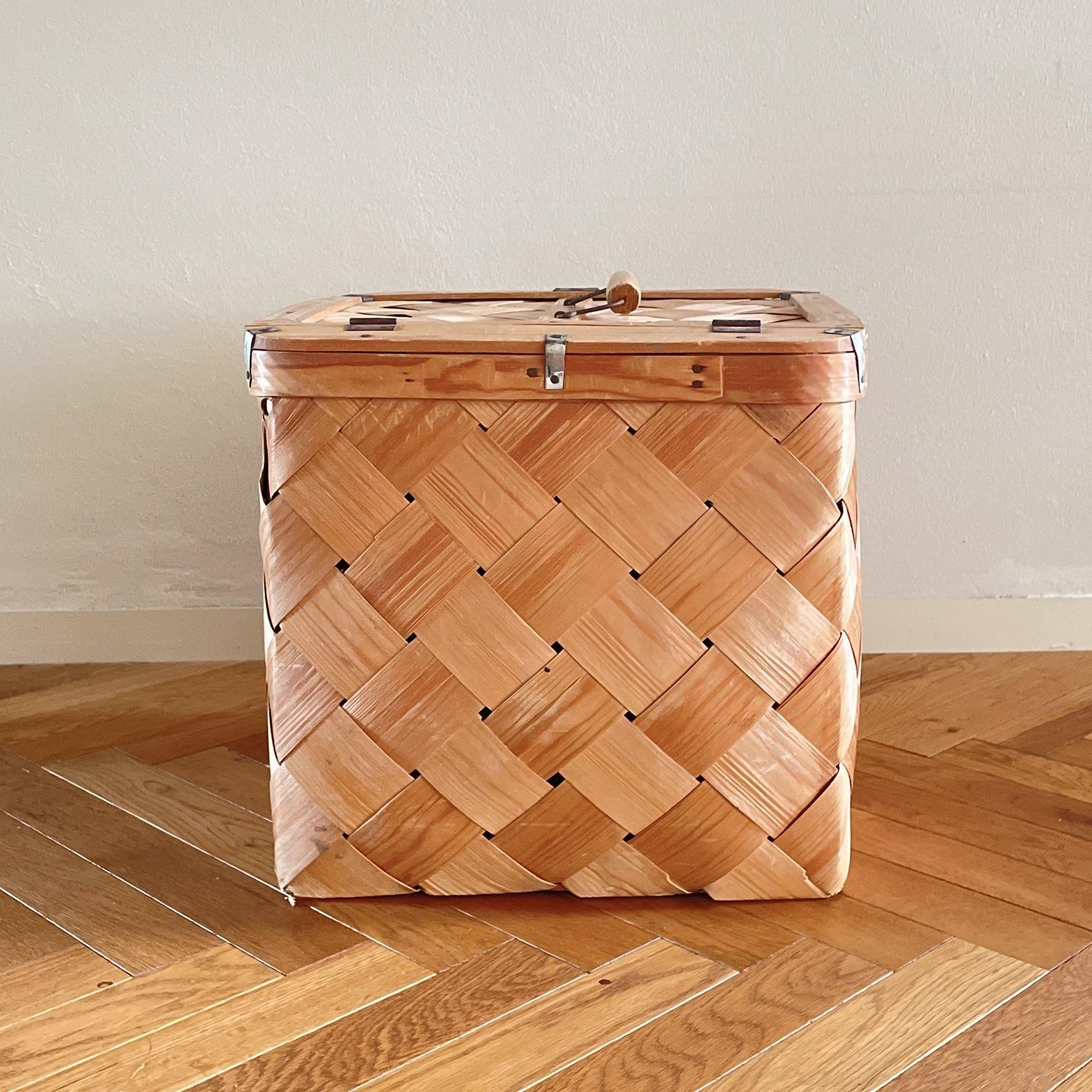 スウェーデン製のヴィンテージバスケットです。スウェーデンでは「スポンコリ」と呼ばれ、昔から収納カゴとして親しまれてきました。スポンコリは長方形が多い中、キューブ型を久しぶりに見つけました。フタ付きのカゴは収納力たっぷりで、この雰囲気のあるバスケットを部屋に置くと、いいインテリアになりますよ。コンディション良好なので、このキューブ型を探されていた方はこの機会にぜひ!