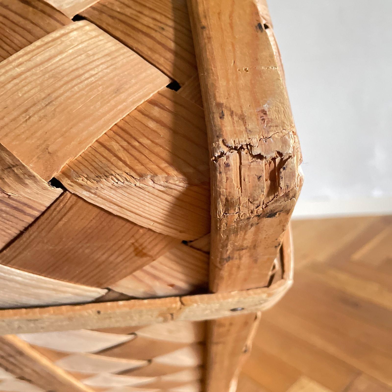 スウェーデンで使い込まれたユーズド品のため、使用感が見られます。擦れ跡や内側底面の汚れ、左側ハンドルの一部破損、素材のカケが正面左端と底面角に、一部金具のサビ、底面の細板のワレやカケなどが見られます(ぐらぐらせず固定されています)。詳細は画像をご確認ください。