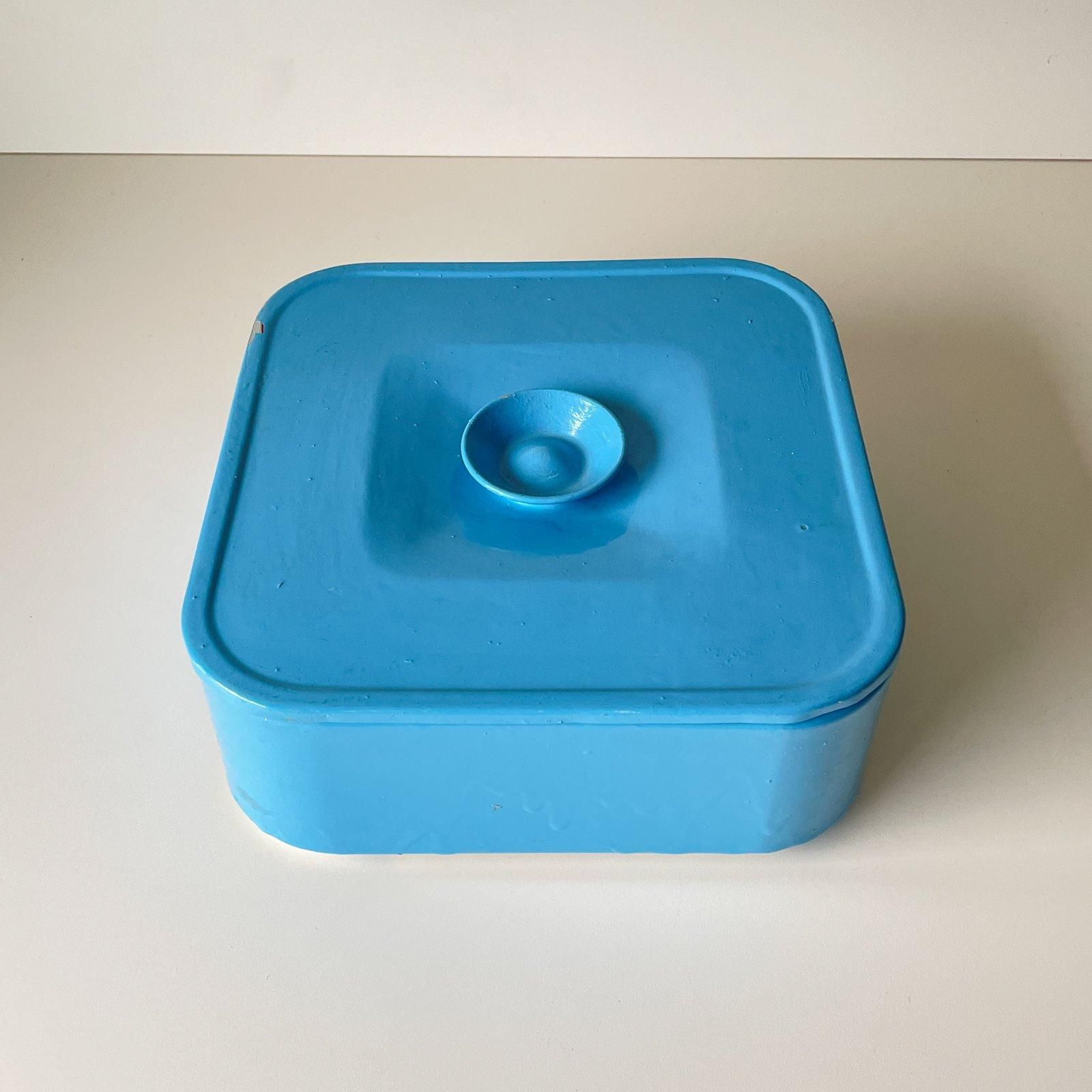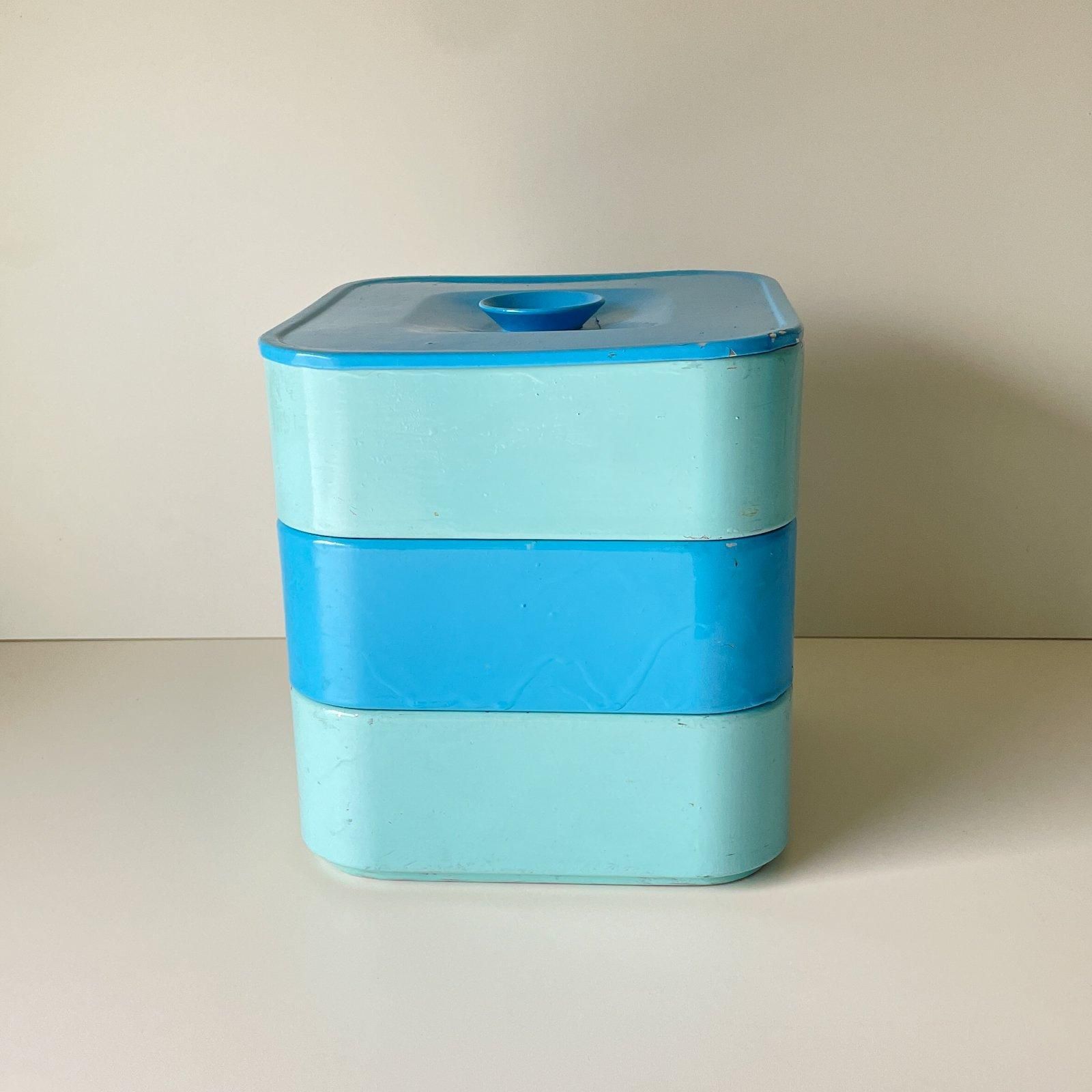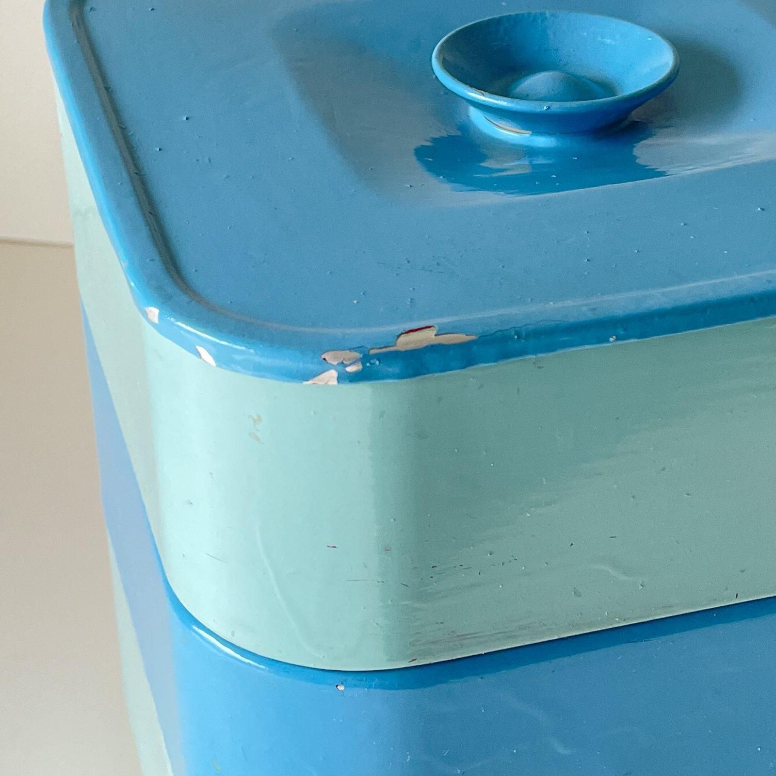 スウェーデンで作られていたブレッドボックスです。アルミ製なのでとても軽く、3段重ねはたっぷり収納できます。北欧らしいきれいな2色のブルーの色合せが魅力的です。元々はシナモンロールやお菓子などをしまっておくために作られていましたが、収納ボックスとして使っていただけます。中に何を収めようかと考えるのも楽しいですね。