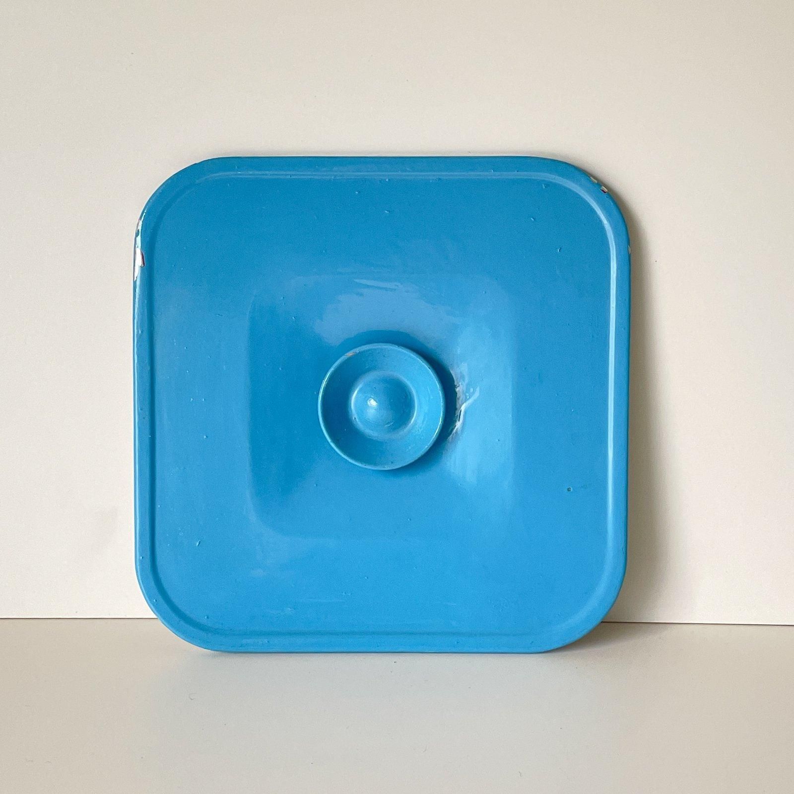 スウェーデンで使用されていたユーズド品です。おそらく元々は赤い塗装で、それを持ち主の方が2色のブルーを塗装したと思われます。3段目の底面は赤色のままです。側面には塗料跡が見られます。他はスレによる塗装剥がれが所々見られます。底面、底や本体のフチの一部に赤が見られます。詳細は画像をご確認くださいませ。使用感は見られるものの普段使いしていただけるコンディションですが、価格は状態を考慮して設定しています。