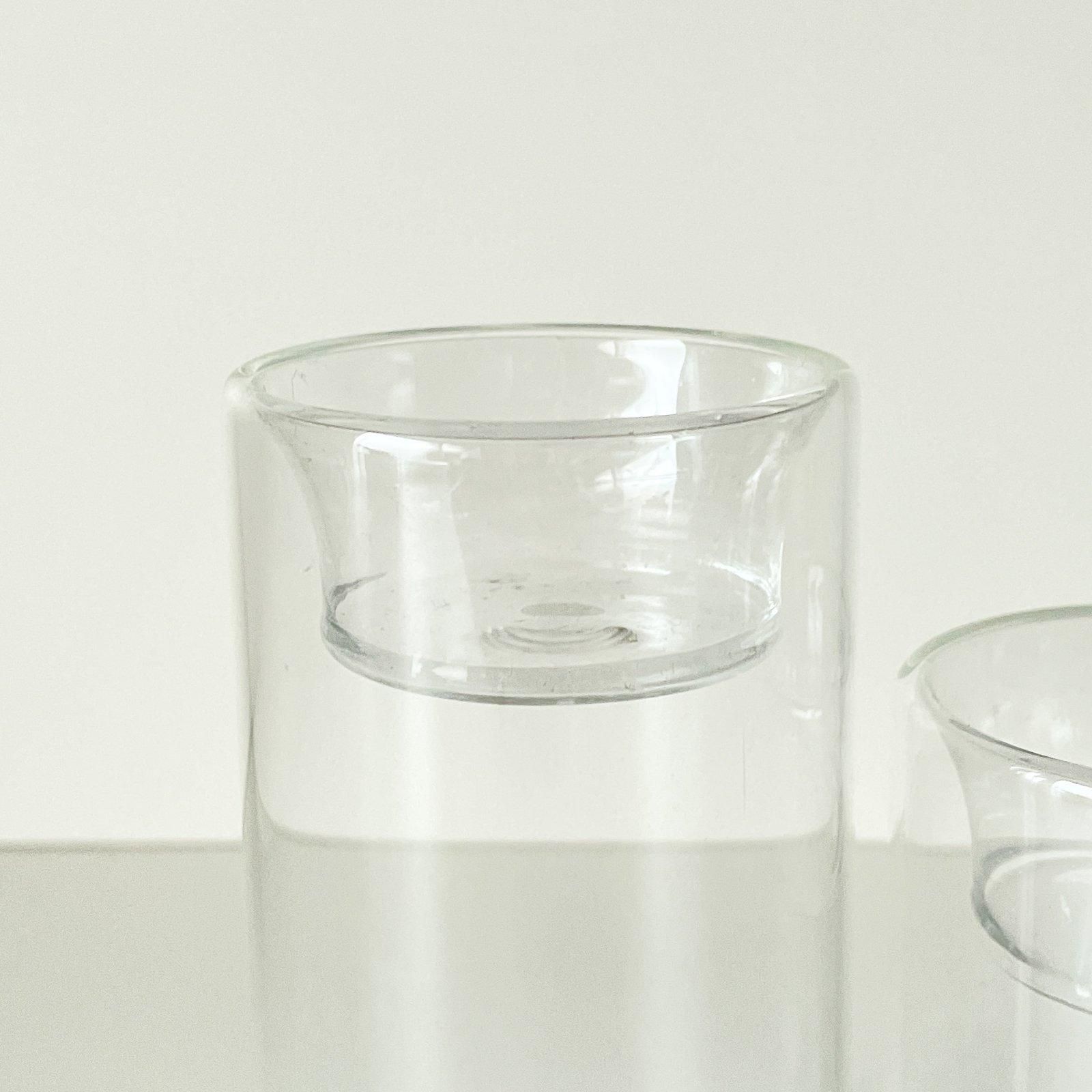 スウェーデン製の高さ違いのガラスのキャンドルホルダー3つをセットにしました。円柱形の上にカップキャンドルを乗せる、とてもシンプルなつくりです。高さ違いの3つをまとめて使うとより魅力的です。