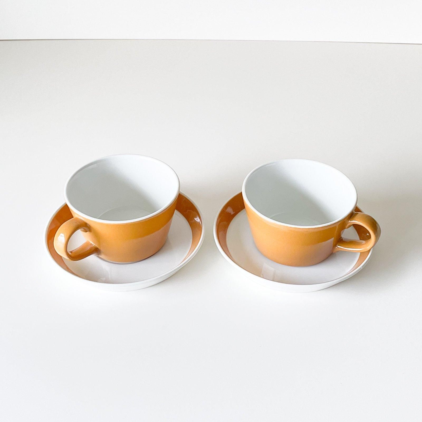 ARABIAで1964年ー1974年の間に生産されていた、APRIKOOSI | アプリクーシ のカップ&ソーサーです。当時、ARABIAでデザインディレクターだったカイ・フランクの元でデザインをしていた、カーリナ・アホによるデザイン。すっきりしたフォルムとアプリコットカラーの色使いがとても魅力的です。