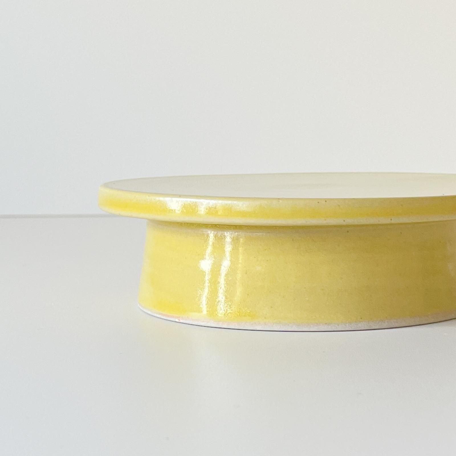 スウェーデン・ストックホルムにあるセラミックスタジオmanosのファウンダーであるkarinと、パートナーのNillaがおふたりで作陶したミニサイズのケーキスタンドです。昨年スタジオを訪れ、数ある型見本の中からこのケーキスタンドを選び、SPOONFULの20周年にあわせて、イエローを別注して製作していただきました。裏面には製作者のNillaのサインと製作年の25が手で彫られています。