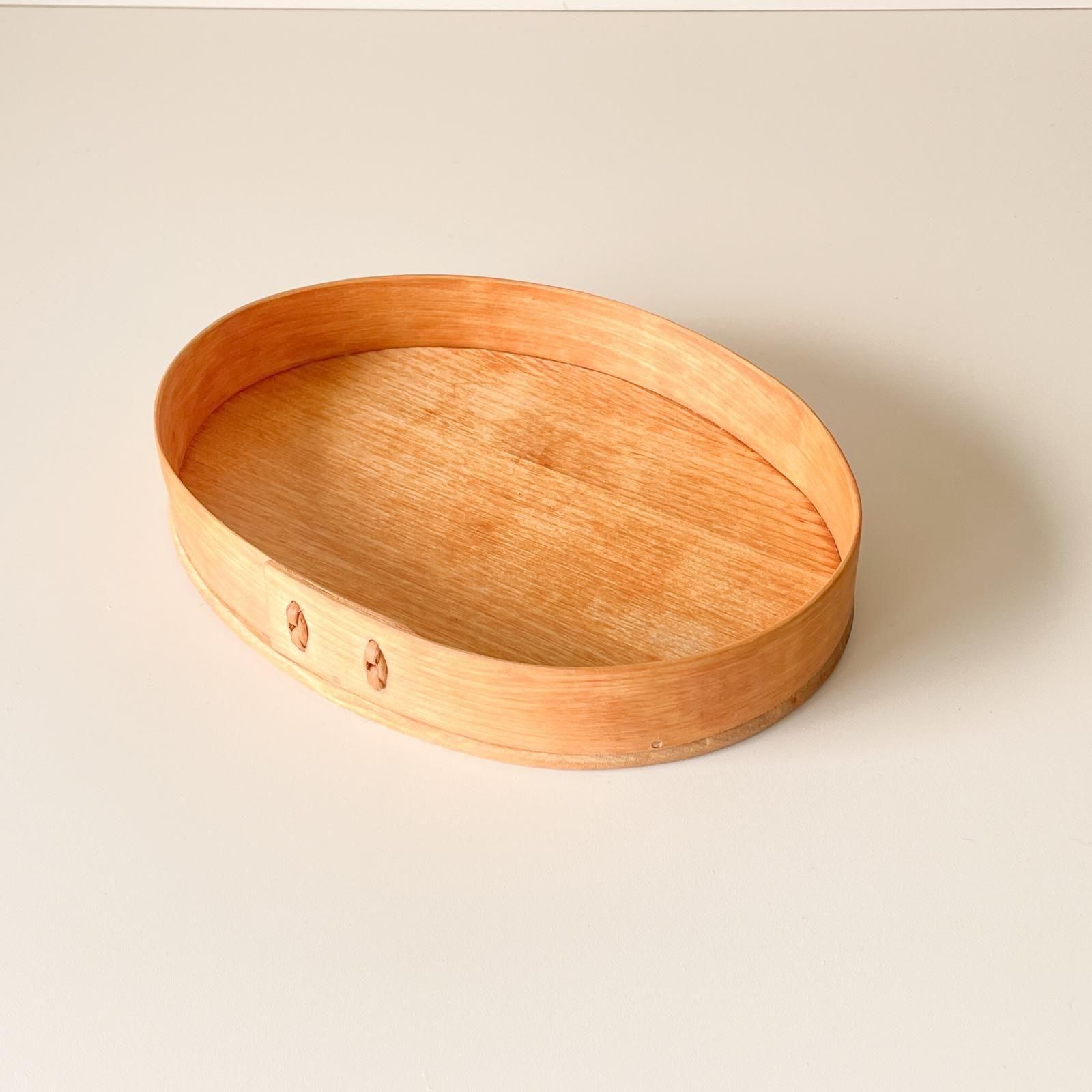 スウェーデン・中部で暮らす木工作家さんが制作した白樺の幹で作られたウッドトレーです。80代のおじいさんが制作されていて、裏面にはイニシャルのJが刻印されています。スウェーデンでは伝統工芸として作られてきた曲木の手法で、正面の重なるところは樹の根を細く割いて留められています。テーブルでミニトレーとして使う他、メガネやスマートフォンなどの定位置としておいておくのもおすすめです。暮らしのシーンに木製のアイテムがひとつあるとあたたかみが生まれますよ。