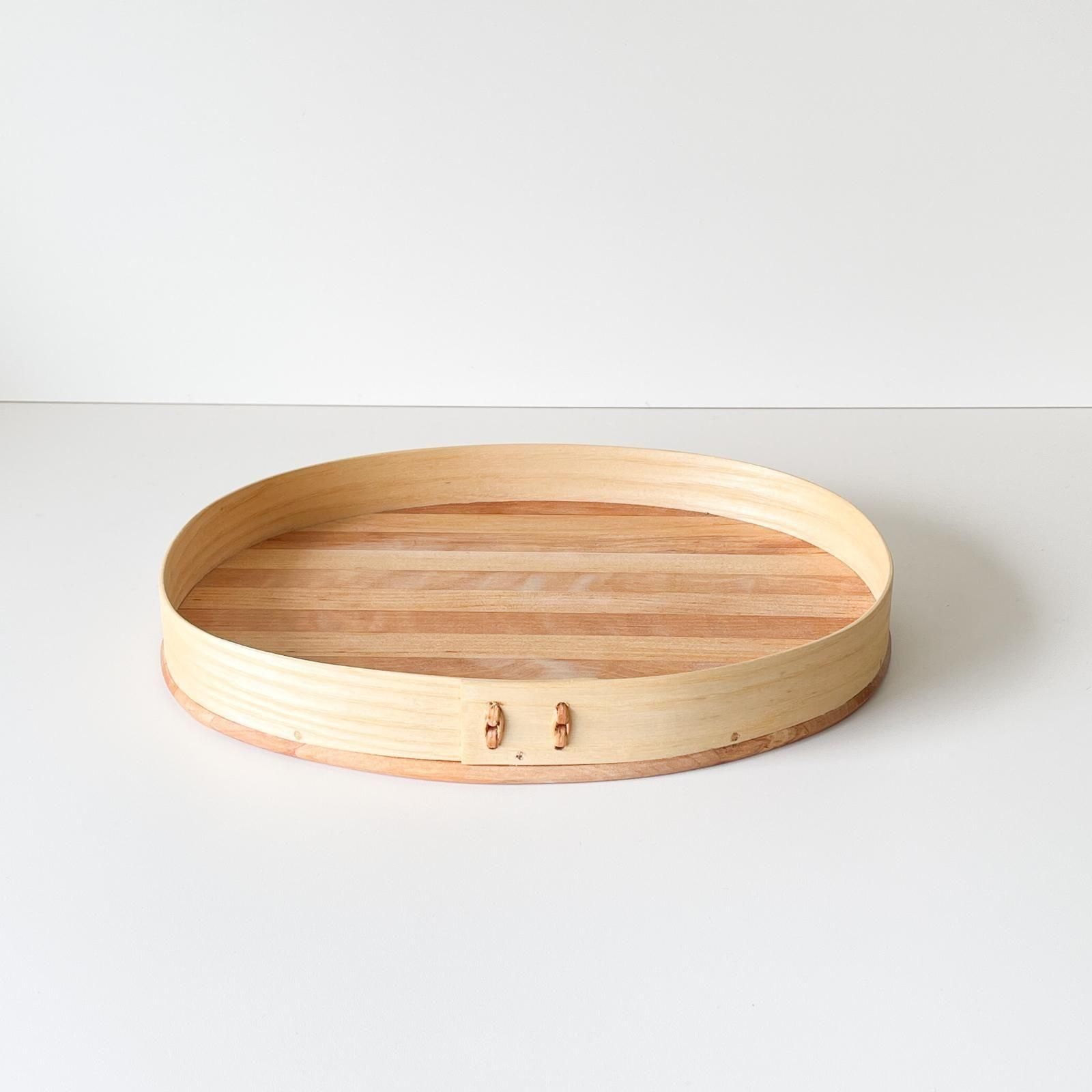 スウェーデン・中部で暮らす木工作家さんが制作した白樺の幹で作られたウッドトレーです。白樺の樹の濃淡がストライプ模様になり美しいです。80代のおじいさんが制作されていて、裏面にはイニシャルのJが刻印されています。スウェーデンでは伝統工芸として作られてきた曲木の手法で、正面の重なるところは樹の根を細く割いて留められています。お茶などをのせて運んだり、食事中のトレーにしたり。暮らしのシーンに木製のアイテムがひとつあるとあたたかみが生まれますよ。