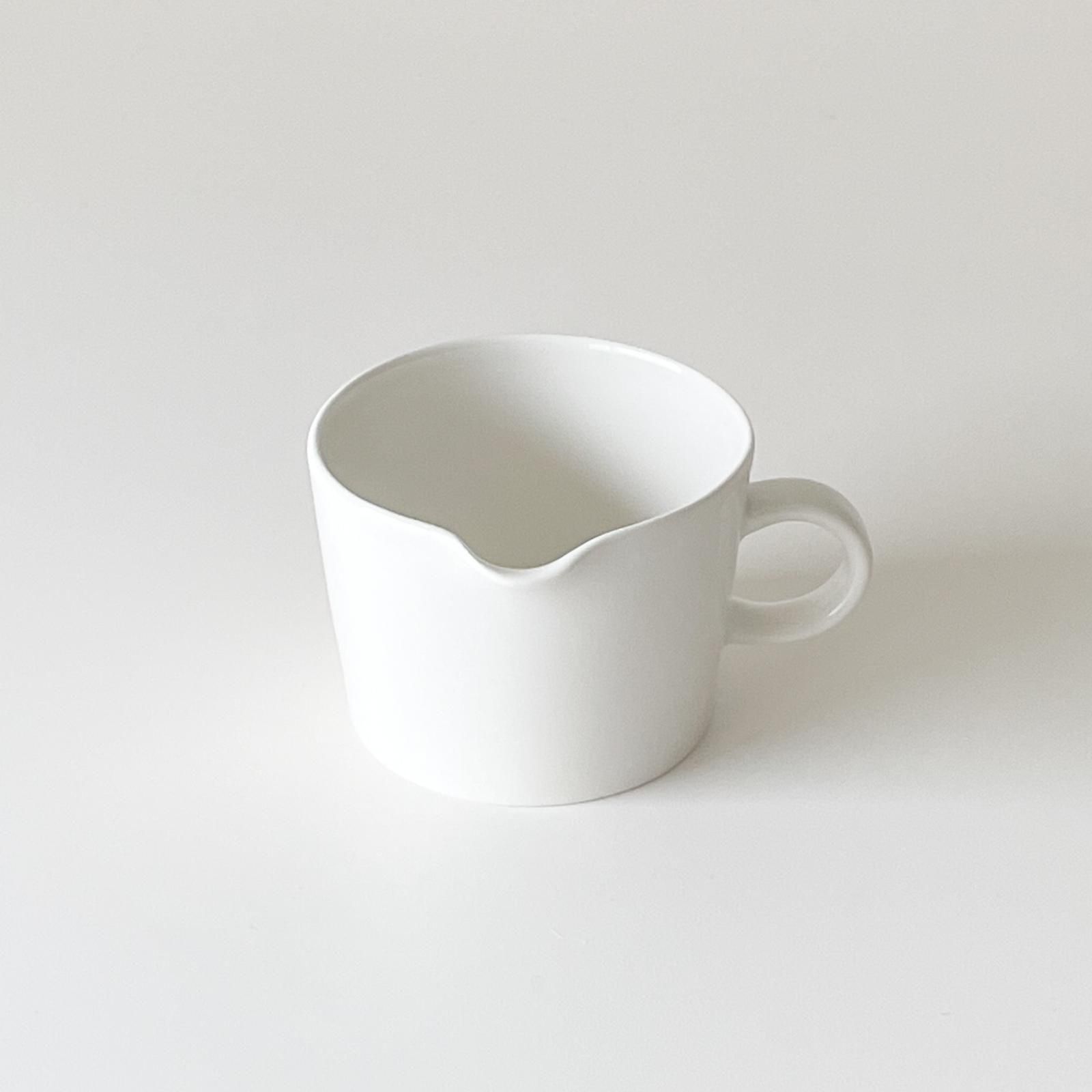 ARABIA・TEEMAシリーズのヴィンテージのクリーマーです。ハンドルは注ぎ口から90°の位置に付けられた、特徴のあるデザイン。カイ・フランクの手によって、TEEMAの前身であるKILTAシリーズが誕生したのは1953年。この上なくシンプルなフォルム、シックな色使い、重ねた時におさまりの良い機能美を感じさせるデザイン。当時はフィンランド国内のみならず、世界中で注目を集めました。その後、素材を陶器から磁気に変更し、オーブンや電子レンジに対応するようにアップデートされ、1981年に改良版「TEEMA」として発売されました。