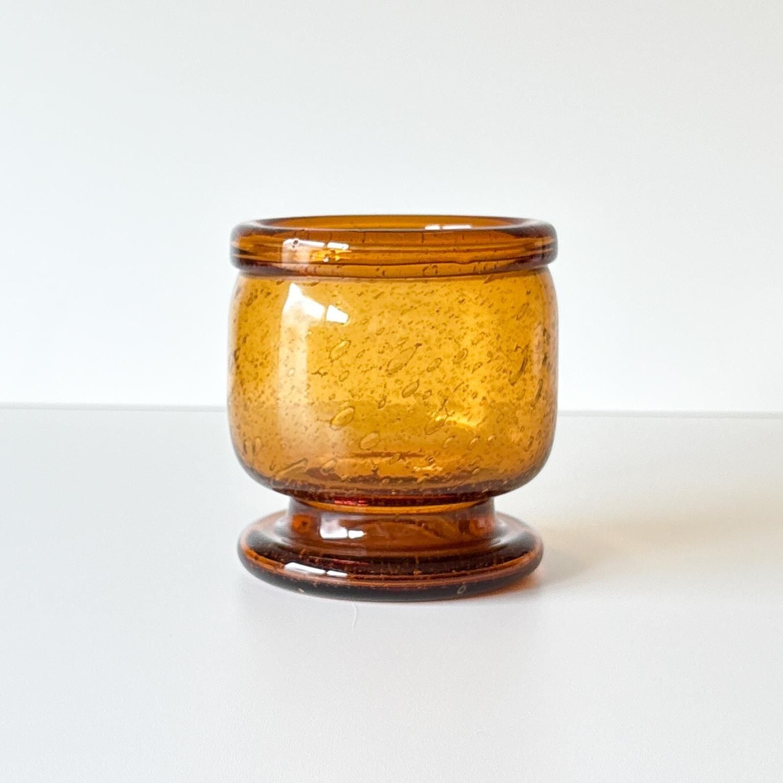 ハンドメイドで作られたガラス作品は、全体に入った細かな気泡が美しい逸品で、落ち着いた琥珀色も魅力的で存在感があります。